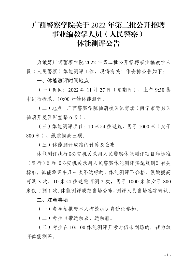 TapTap点点关于2022年第二批公开招聘事业编教学人员(人民警察)体能测评公告 来源: 发布时间:2022-11-26 17:33:25 浏览次数: 次 【字体:小 大】 附件1:TapTap点点2022年第二批公开招聘事业编教学人员(人民警察)体能测评人员名单.xlsx附件2:关于印发公安机关录用人民警察体能测评项目和标准(暂行)的通知.pdf 分享到: 【打印正文】