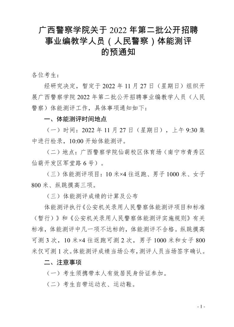 TapTap点点关于2022年第二批公开招聘事业编教学人员(人民警察)体能测评的预通知 来源: 发布时间:2022-11-21 23:37:52 浏览次数: 次 【字体:小 大】 附件:关于印发公安机关录用人民警察体能测评项目和标准(暂行)的通知.pdf 分享到: 【打印正文】