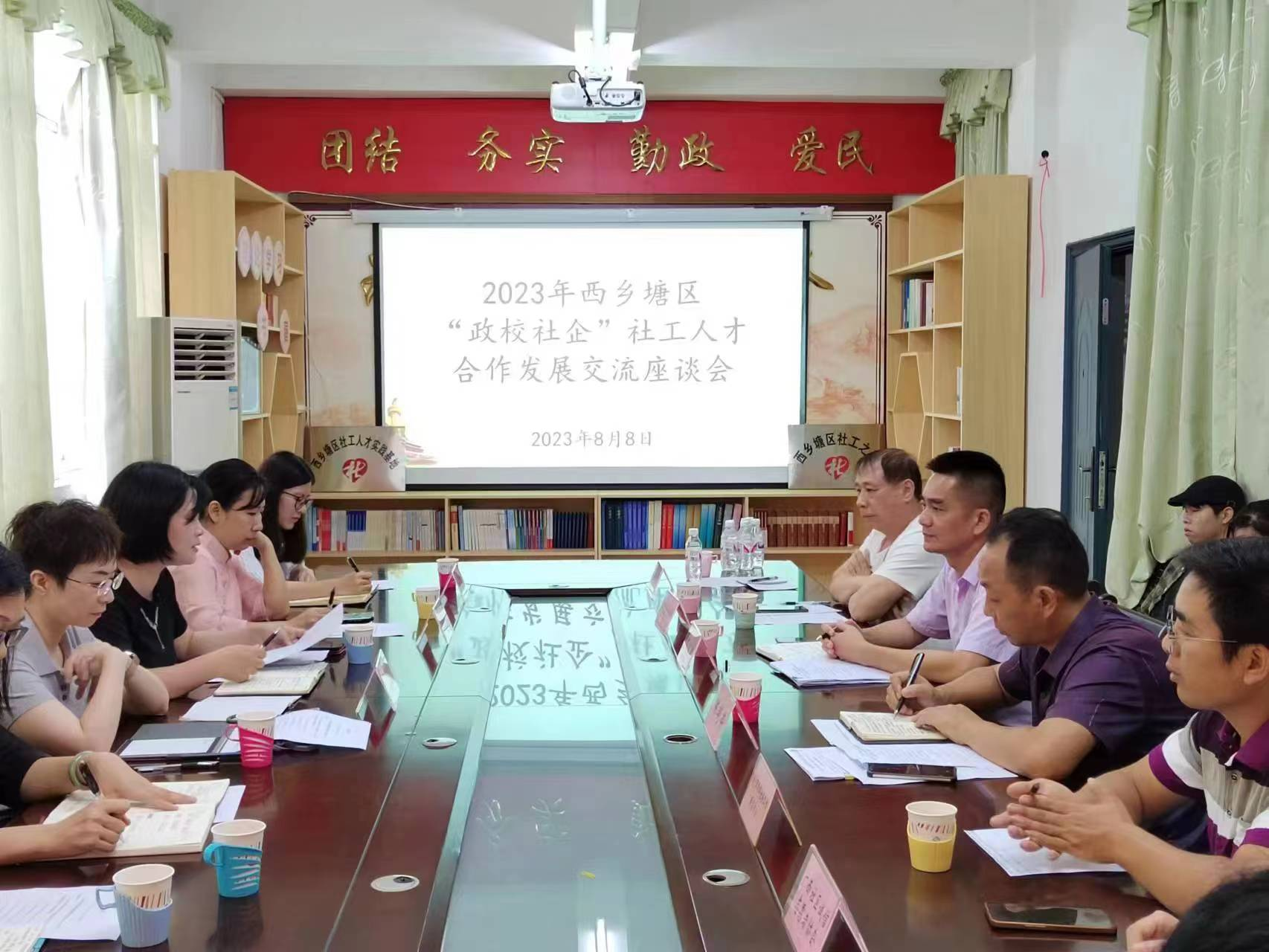 2023年8月8日,法学院副院长、教师第二党支部书记郭丽萍,第二党支部副书记、民商教研室副主任陈斯娜,支部纪检委员、社会工作综合实训教研室主任连娟,社会工作理论教研室副主任杨晨笛,第二党支部党员教师、法学院国际法学专业学科带头人邓珊教授,民商教研室专任教师陈钦雁等人参加由南宁市西乡塘区民政局组织的2023年西乡塘区“政校社会”社工人才合作发展交流座谈会。