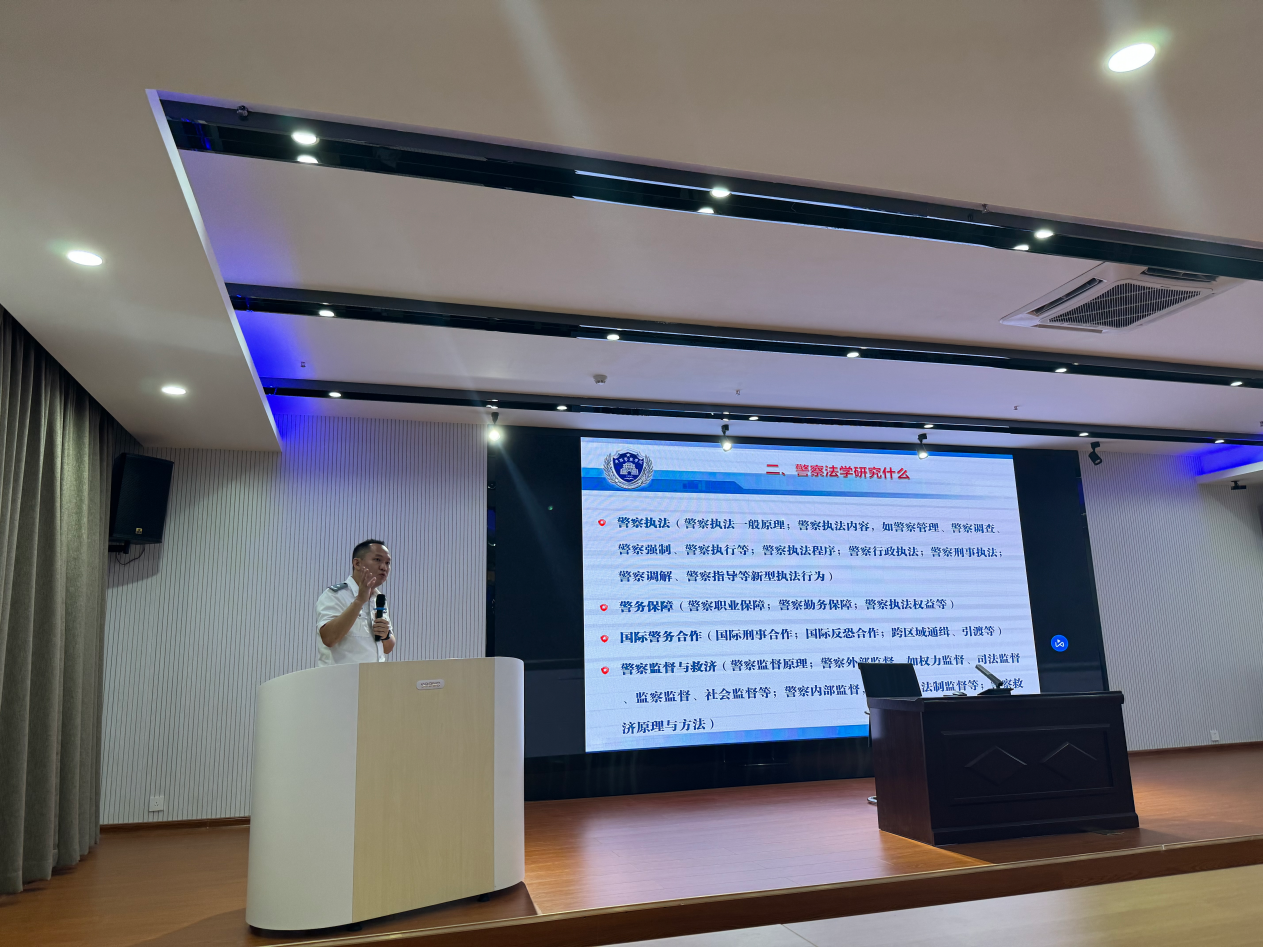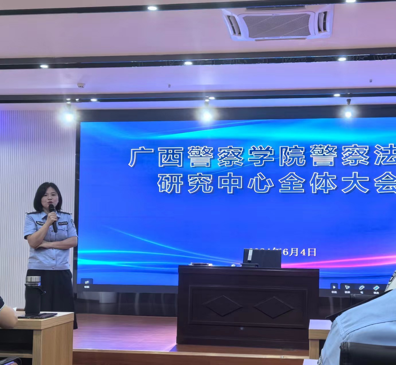 研究中心郭丽萍副主任介绍了中国-东盟(广西)警学研究院的相关活动、未来警察法研究中心的发展方向,并就近期警察法研究中心的科研工作思路做了分享。