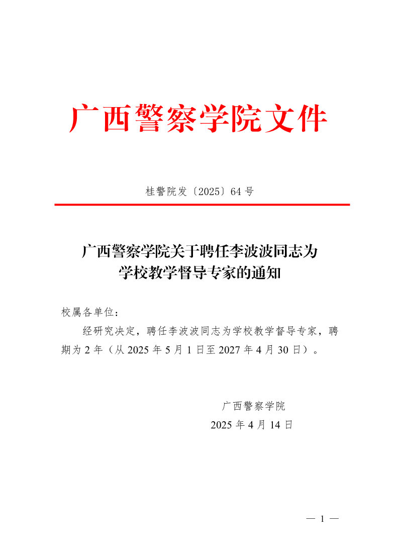 TapTap点点关于聘任李波波同志为学校教学督导专家的通知