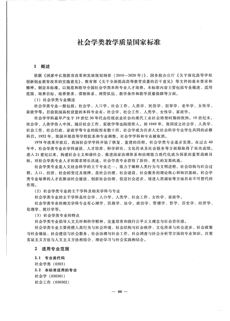 社会学类教学质量国家标准