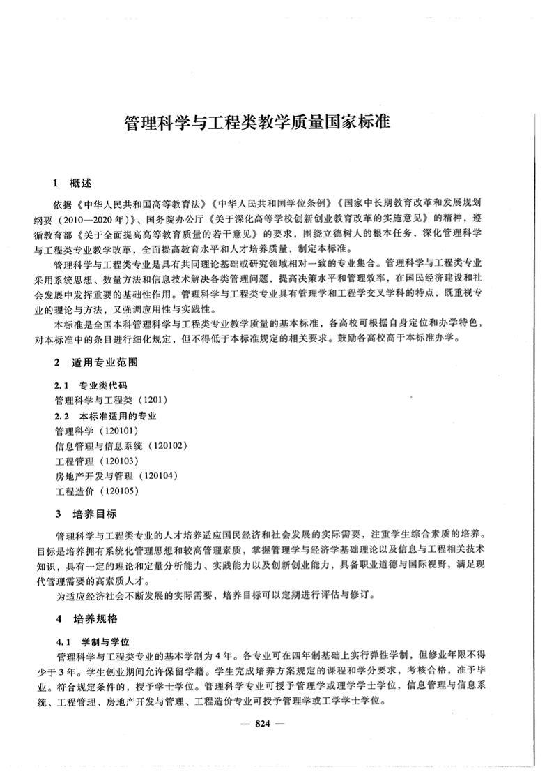 管理科学与工程类教学质量国家标准