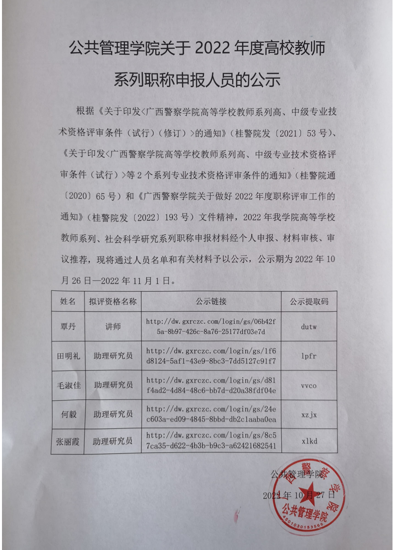 公共管理学院关于2022年度高校教师 系列职称申报人员的公示