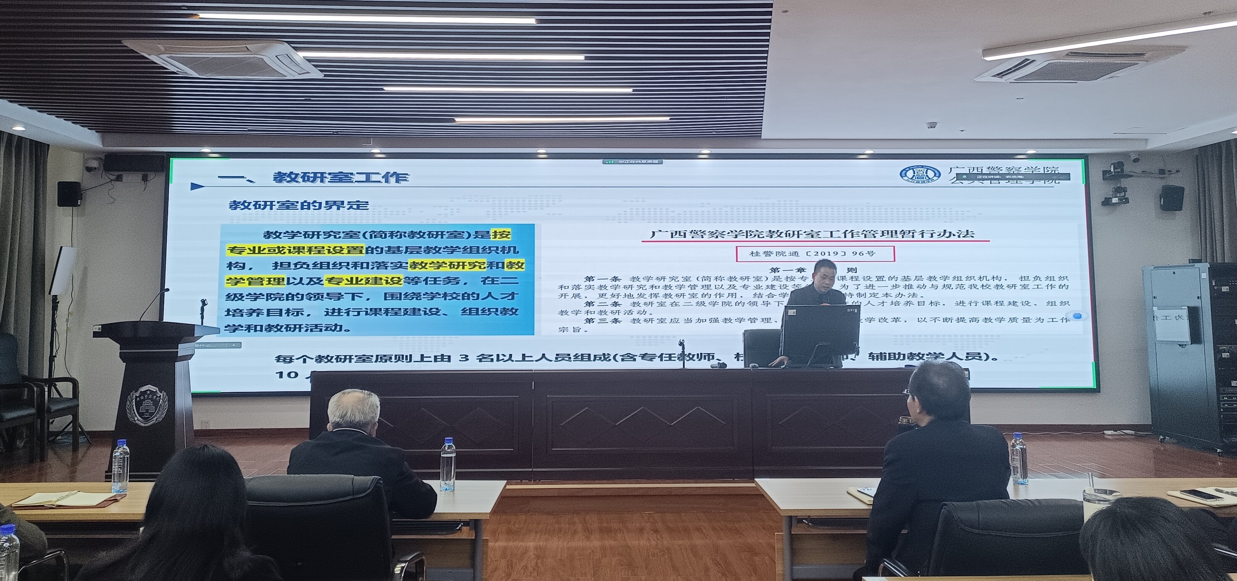 为提升教研室主任的业务能力和管理水平,3月19日下午公共管理学院在五合校区2号实训楼401会议室召开了教研室主任专题培训会。本次培训会由学院黄朝成院长、谭玉龙副院长主讲。党总支书记樊宗高、副院长农忠海出席,学院全体教研室主任、学院教务科研办人员参加了会议。