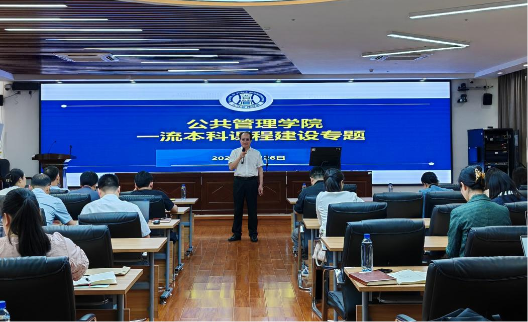 为推进我院一流本科课程培育与建设,提升课程建设整体质量与水平,3月26日下午,公共管理学院于五合校区2号实训楼401会议室召开一流本科课程建设专题培训会。培训会由学院院长黄朝成主持,副院长蔡明丹主讲。出席会议的有党总支书记樊宗高、副书记李海波、副院长农忠海、副院长谭玉龙,学院全体教职工、金通公司驻校教师参加会议。