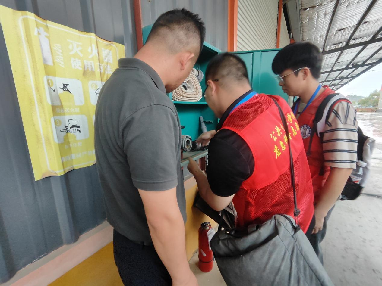 在南京德信达物流有限公司南宁分仓储中心,团队参观了仓储空间与物流运作体系,深入了解安全管理措施及行业安全要点。同学们仔细查看消防设施与货物存储布局,与企业安全管理人员就火灾防范、货物搬运安全等议题深入交流,并现场演示了灭火器、消防水带的正确操作方法,展现了良好的应急实操能力。