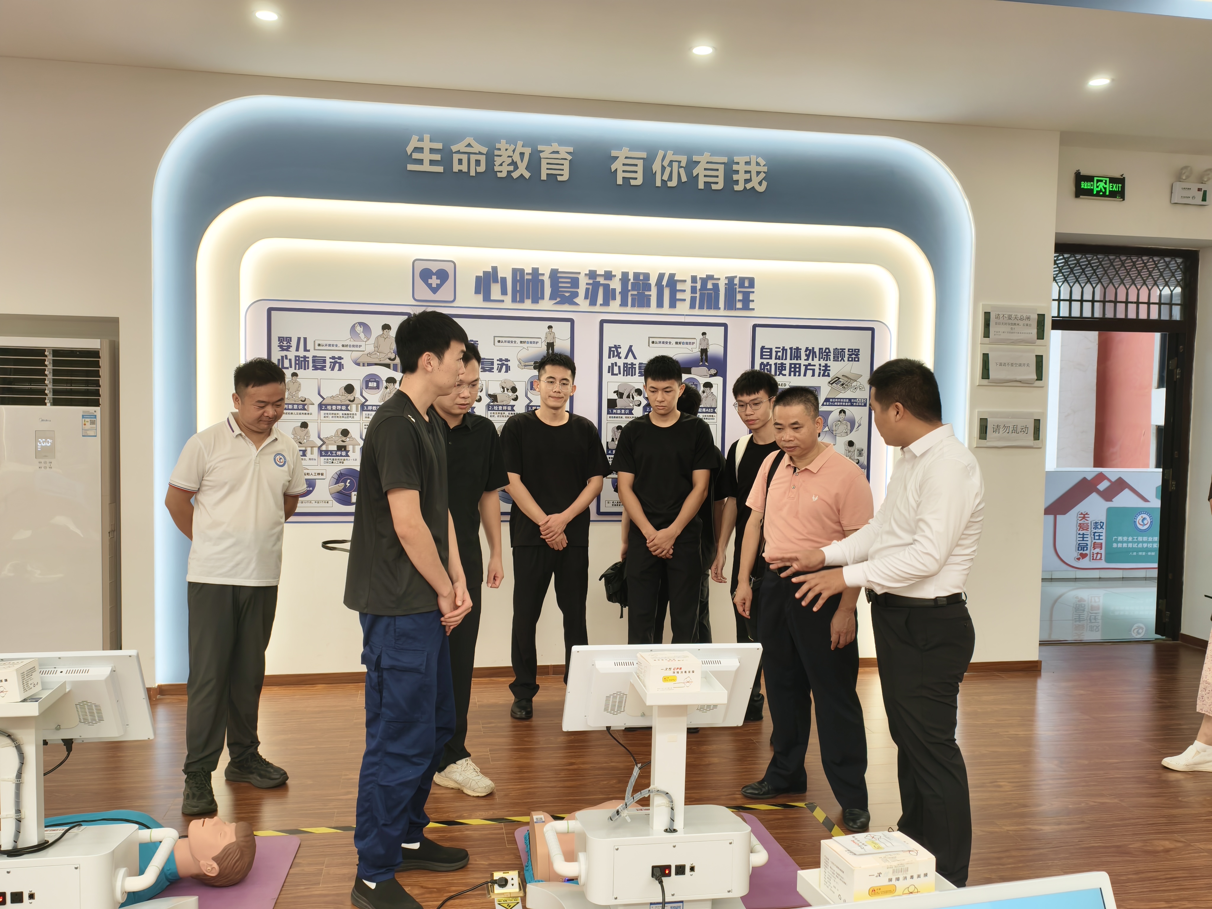 会后,在娄孟伟助理、罗如强负责人的陪同下,谭玉龙一行实地参观了该院的专业实训基地及应急救护培训中心。调研团队详细了解各实训室的功能定位、先进设备配置、日常运行管理模式及在实践教学中的应用成效,对该院实训基地的高标准建设水平与扎实的教学支撑能力给予充分肯定。