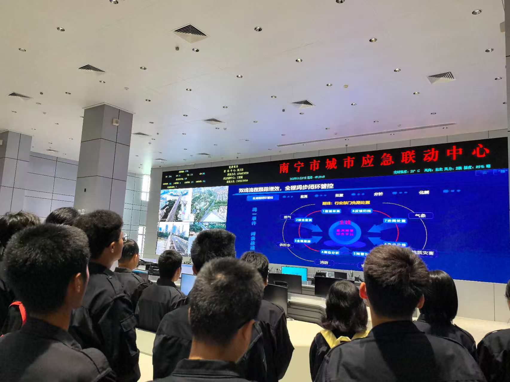 走进南宁市应急管理局,同学们近距离接触应急管理核心工作阵地。在工作人员引导下,先后参观指挥中心、专项工作组办公区等场所,详细了解应急管理指挥体系架构、部门协同机制及突发事件监测预警、应急响应、救援协调等全流程工作规范。通过实时调度系统演示、典型应急案例复盘讲解,同学们直观感受了“统一指挥、分级负责、属地管理”的应急管理工作原则,对课本中“应急响应分级”“跨部门协同”等专业概念有了具象化认知,现场就应急处置流程优化、基层应急能力建设等问题与工作人员深入交流。