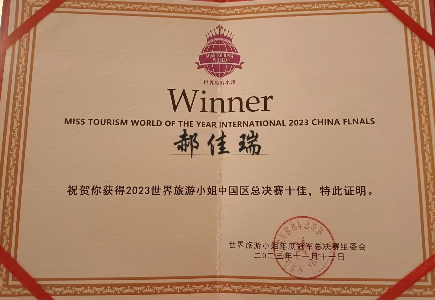 【喜讯】2021级航空服务艺术与管理专业2区队郝佳瑞同学荣获2023世界旅游小姐中国区总决赛十佳