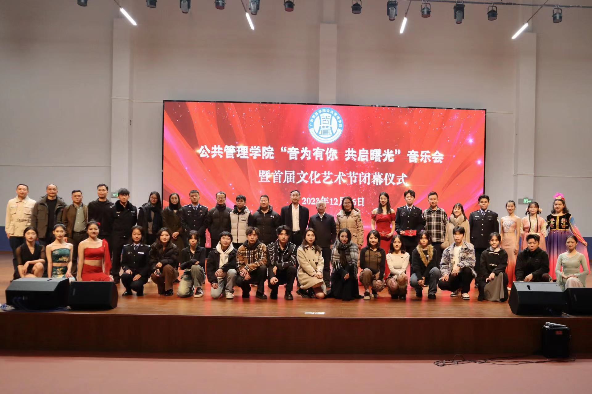 公共管理学院“音为有你,共启曙光”音乐会暨首届文化艺术节闭幕仪式于12月26日晚在五合校区风雨球馆隆重举行。学院党总支书记樊宗高、副书记李海波、副院长蔡明丹、特邀嘉宾广西公安厅民警李燚以及学院师生代表共享这场视听盛宴。