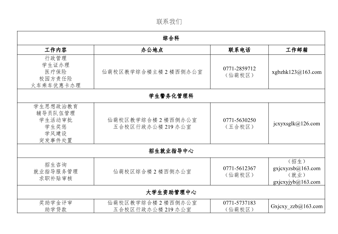 学生工作部(处)各科室办公地点及联系电话
