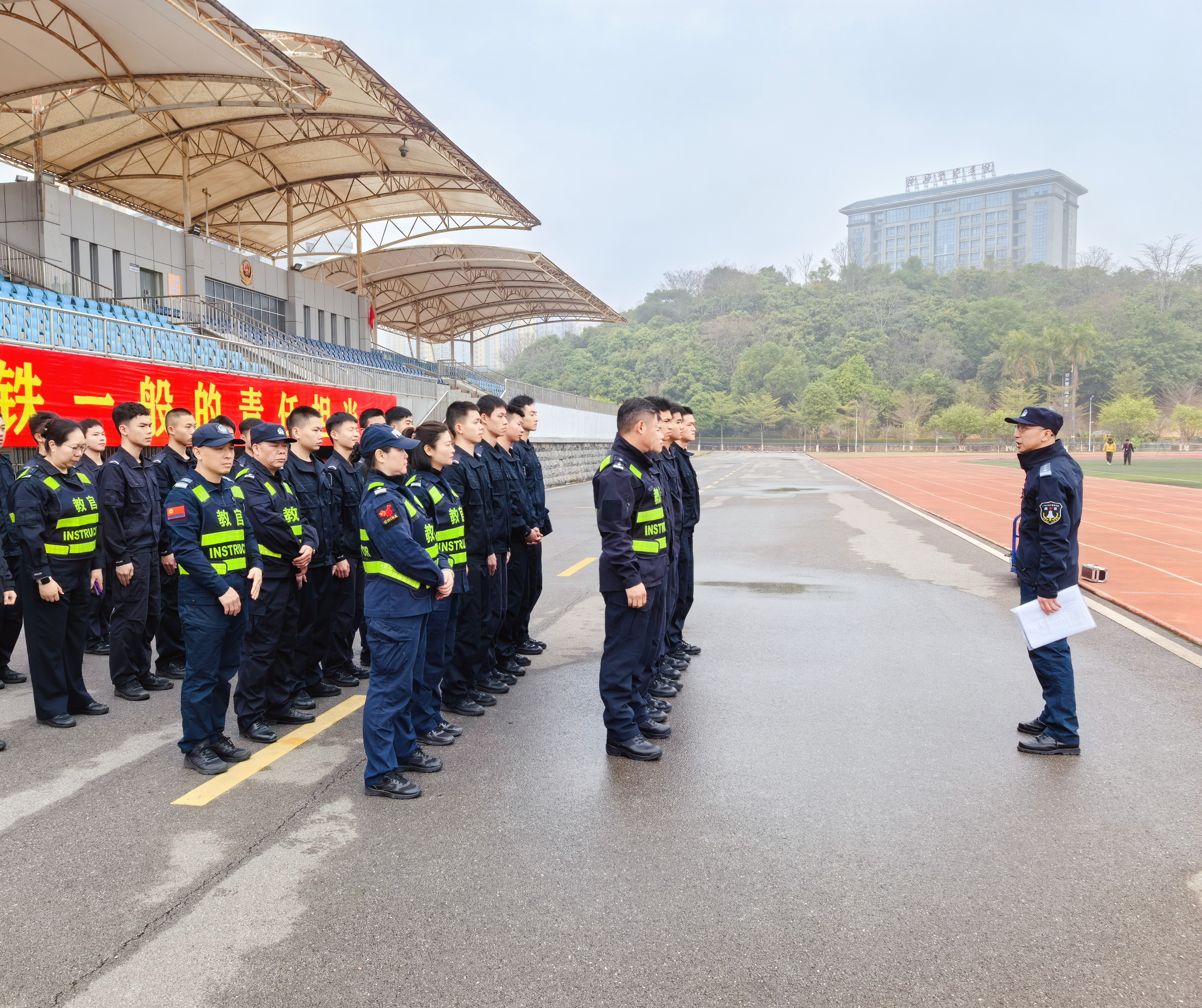 测试开启前,警务实战教研部直属党支部书记、主任黄庆贵着重强调了两点关键事项:其一,务必督促参测干部做好充分的准备活动,高度重视体测过程中的安全问题,坚决杜绝意外伤害事故的发生;其二,严格把控纪律关,规范组织流程,严格依照测评标准开展体测工作,全力保障体测的公平公正性,让每一位参测干部都能在公平的环境中展现自身体能。