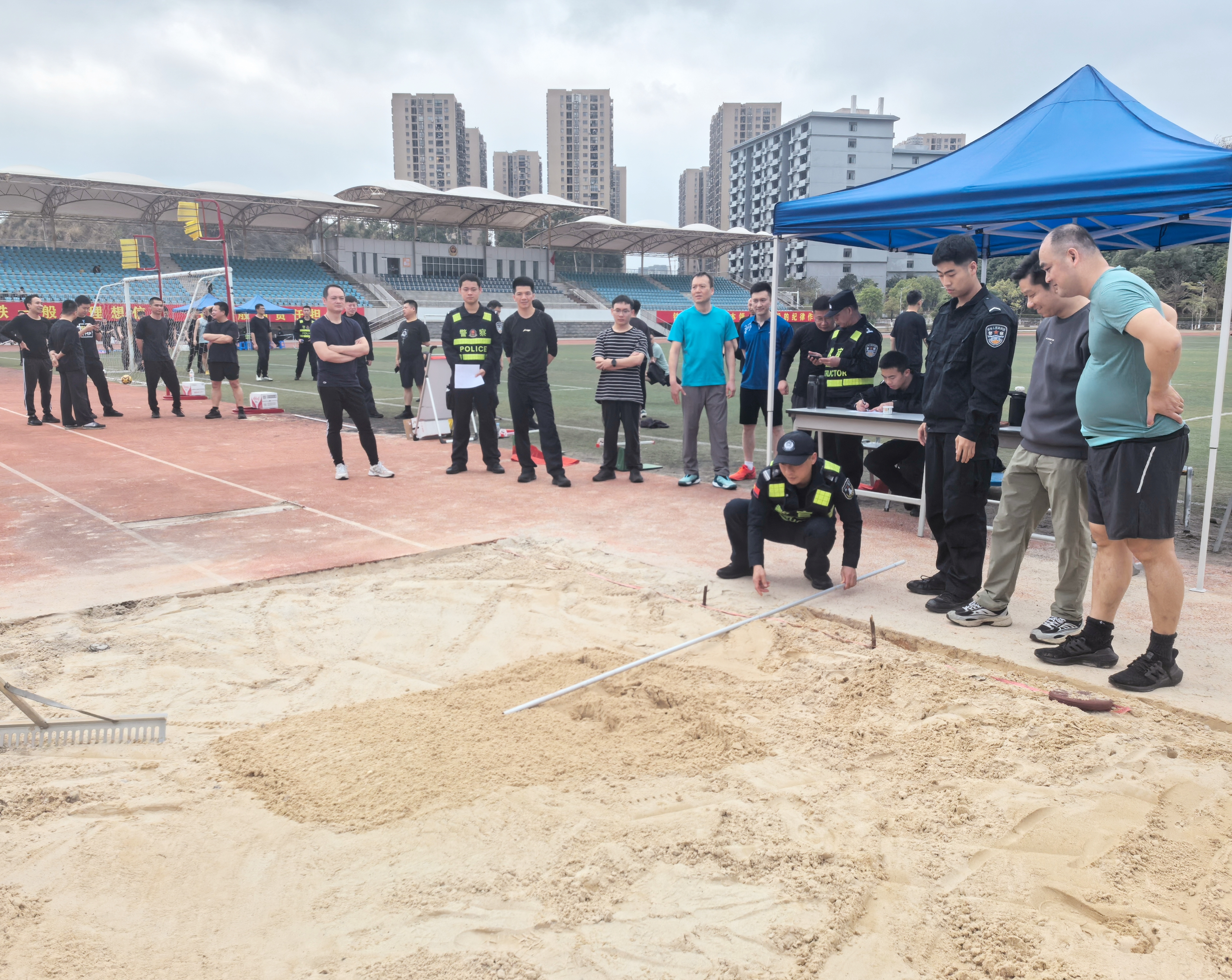 体测期间,全体考官默契协作,严格遵循测评标准要求,始终秉持公开、公平、公正、透明的原则,切实做到“一碗水端平”“一把尺子量到底”。从项目的有序切换,到成绩的精准记录,每一个环节都紧密相扣,高效衔接,确保了整个体测工作公正有序地推进,圆满完成了此次重要任务。