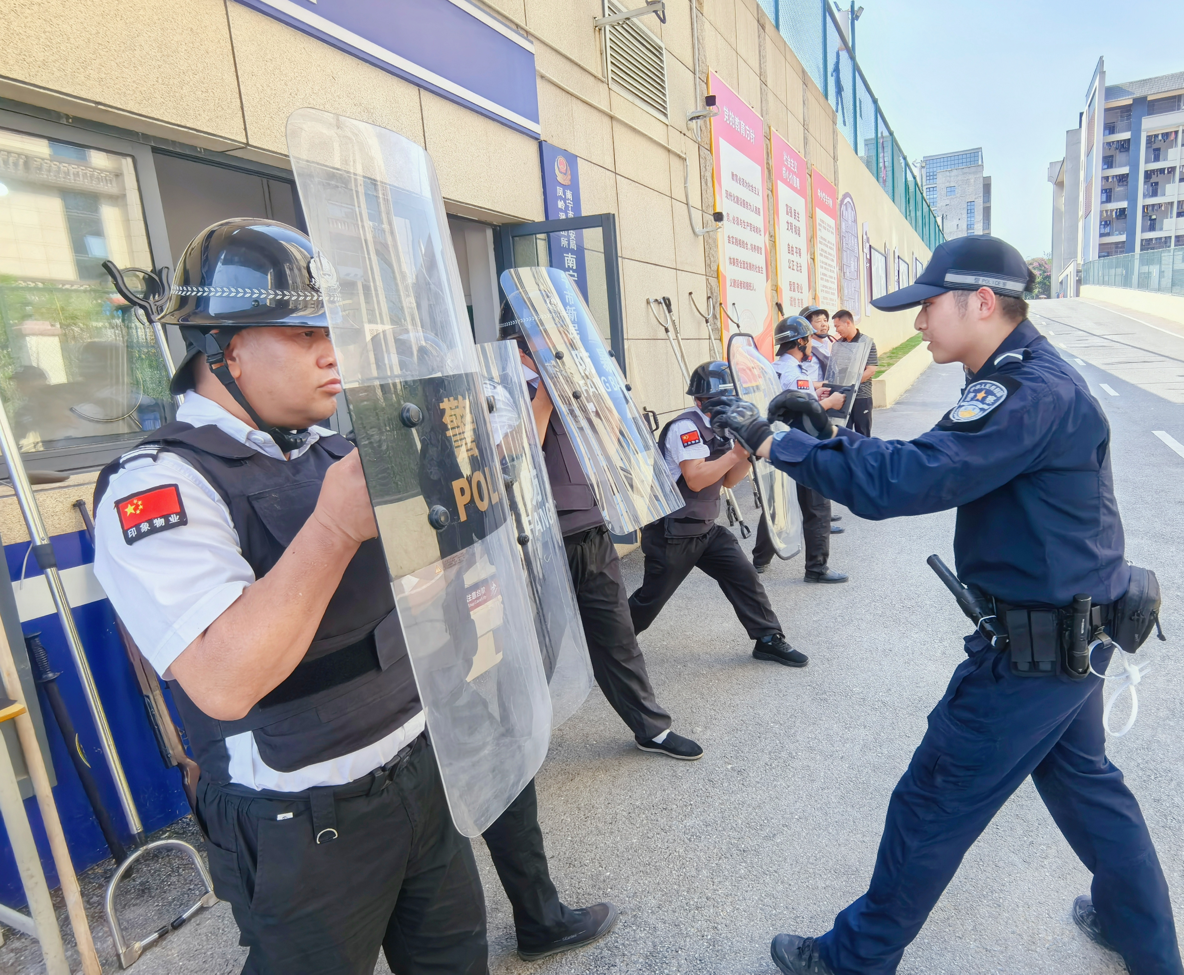 随后,赵柳林带领战协学生在学校大门口,针对校园安防力量开展盾牌、钢叉使用及最小应急单元现场处置专项训练,并组织“红蓝对抗”实战演练。通过模拟真实场景,检验校园安防队伍的实战能力,精准查摆薄弱环节,切实提升应急处突水平。