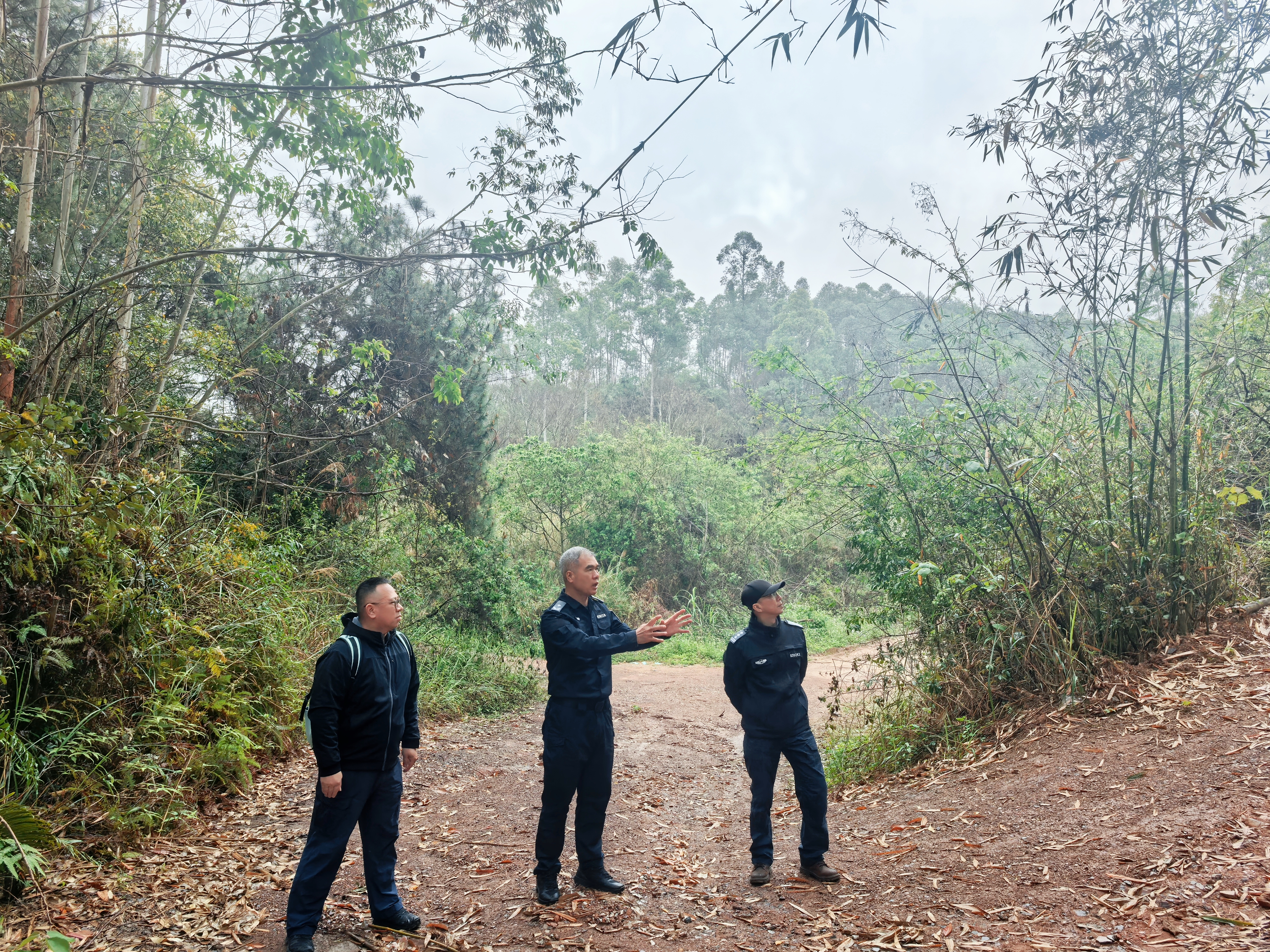 此次踏勘坚持“实战导向、实用为本、实效为先”原则,紧扣公安实战与应急救援人才培养核心需求 。黄庆贵一行沿着五合校区沿边山林地形,逐一察看区域地貌、植被分布、空间尺度及周边环境,详细分析场地在战术训练、应急救援演练等方面的适配性。针对山林地形的复杂性与多样性,团队重点研讨了如何依托自然地势构建模拟山地搜捕、野外救援等实战化训练场景,兼顾公安专业警务实战技能锤炼与应急管理专业救援能力培养的双重功能。