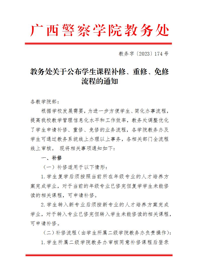 教务处关于公布学生课程补修、重修、免修流程的通知