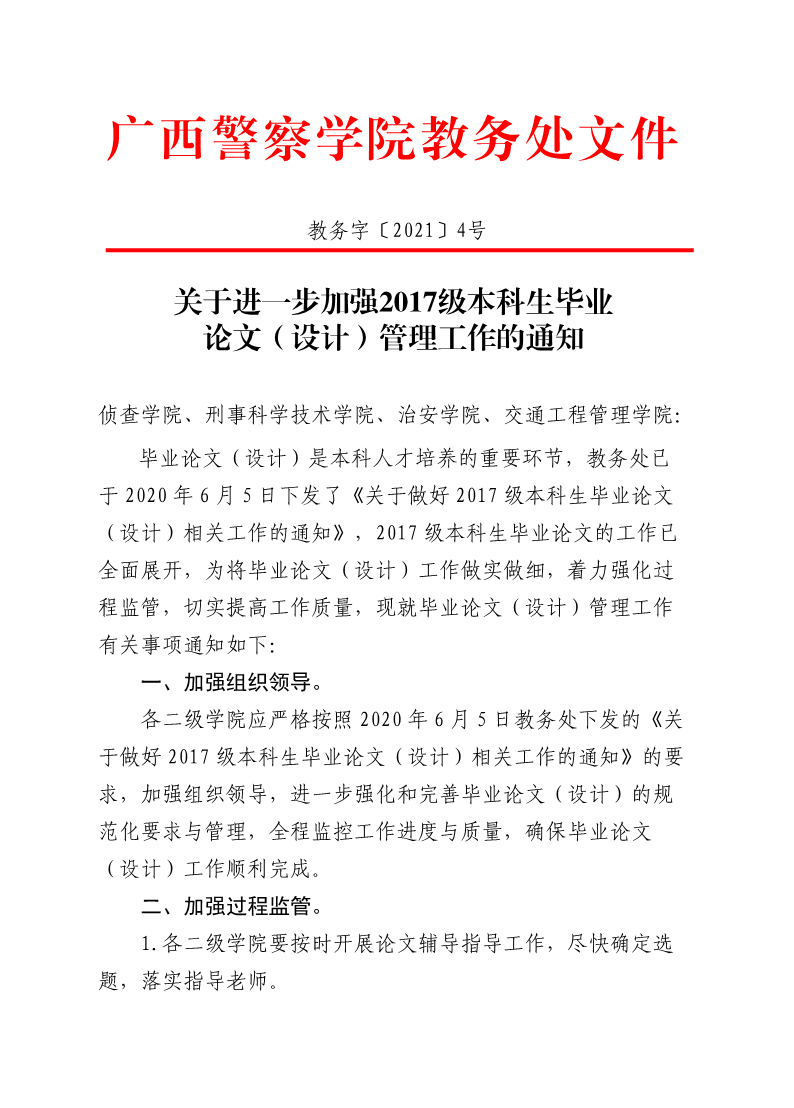 关于进一步加强2017级本科毕业生毕业论文(论文)管理工作的通知