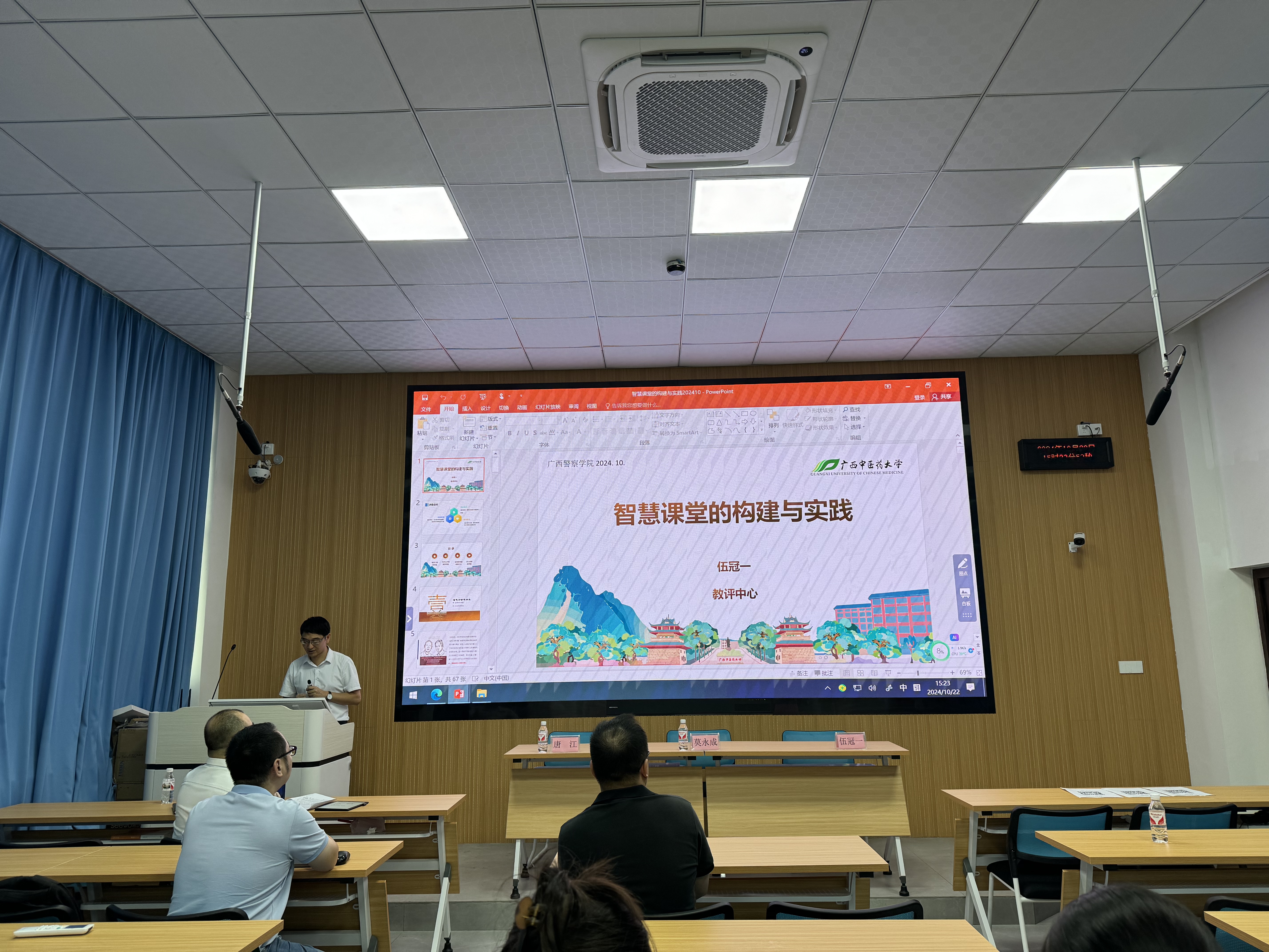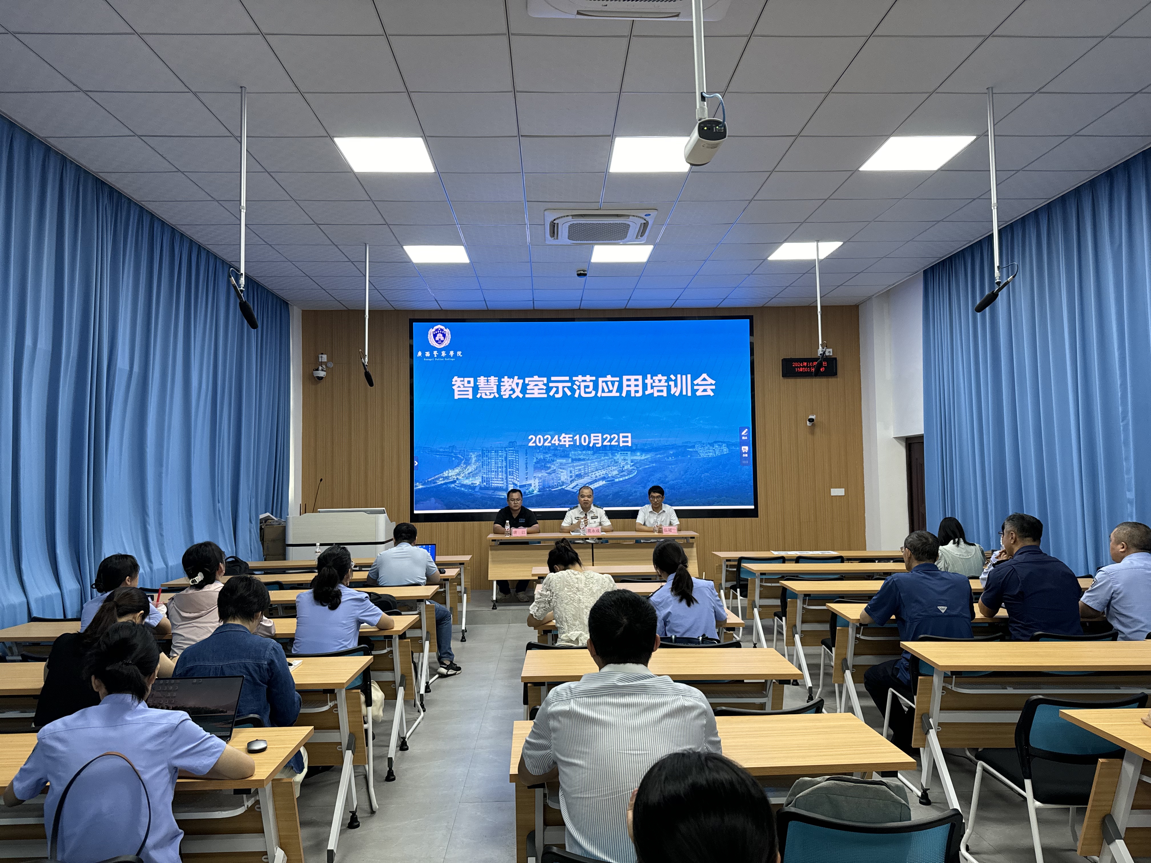 2024年1022日下午,教务处在五合校区教学楼119举办了智慧教室示范应用培训会。次培训由教务处副处长莫永成主持,本学期在智慧教室有授课任务的70多名教师参加。