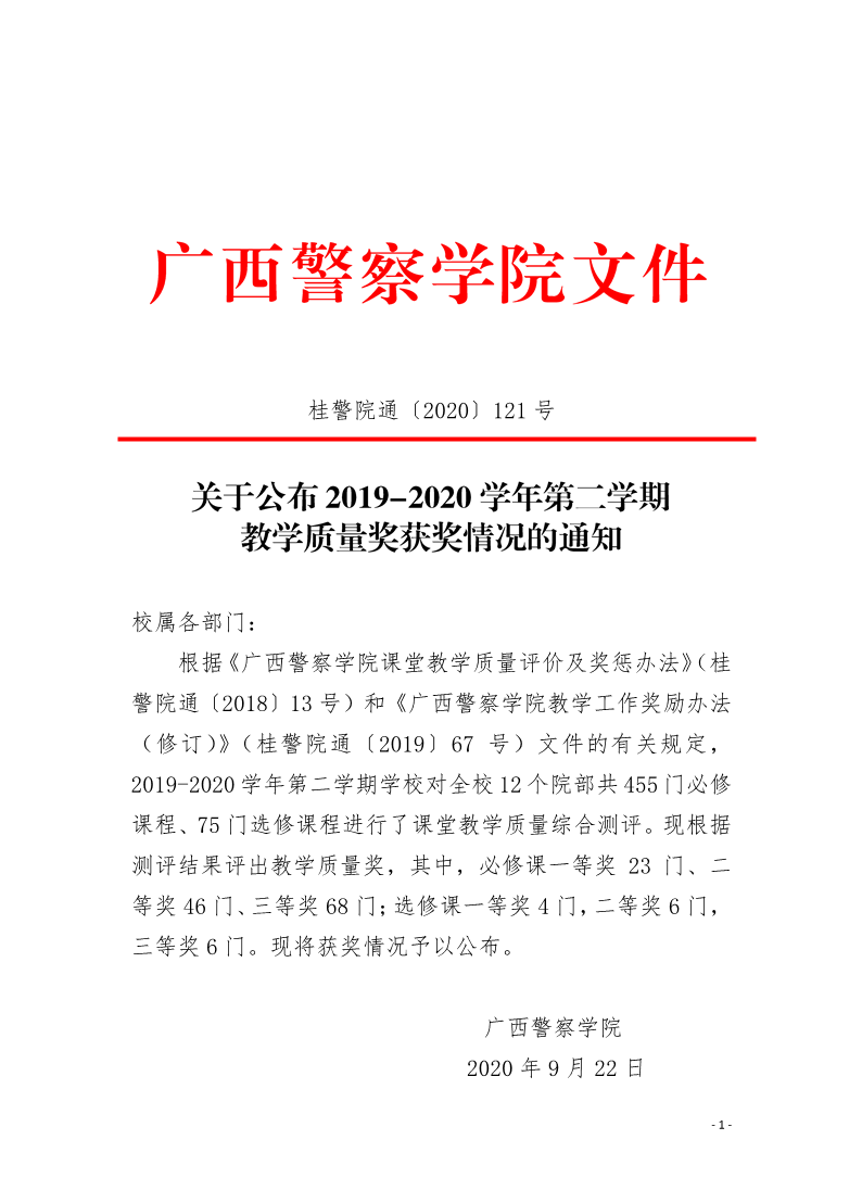 关于公布2019-2020学年第二学期教学质量奖获奖情况的通知