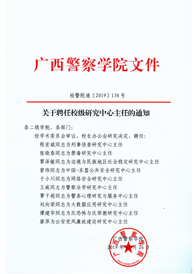关于聘任校级研究中心主任的通知