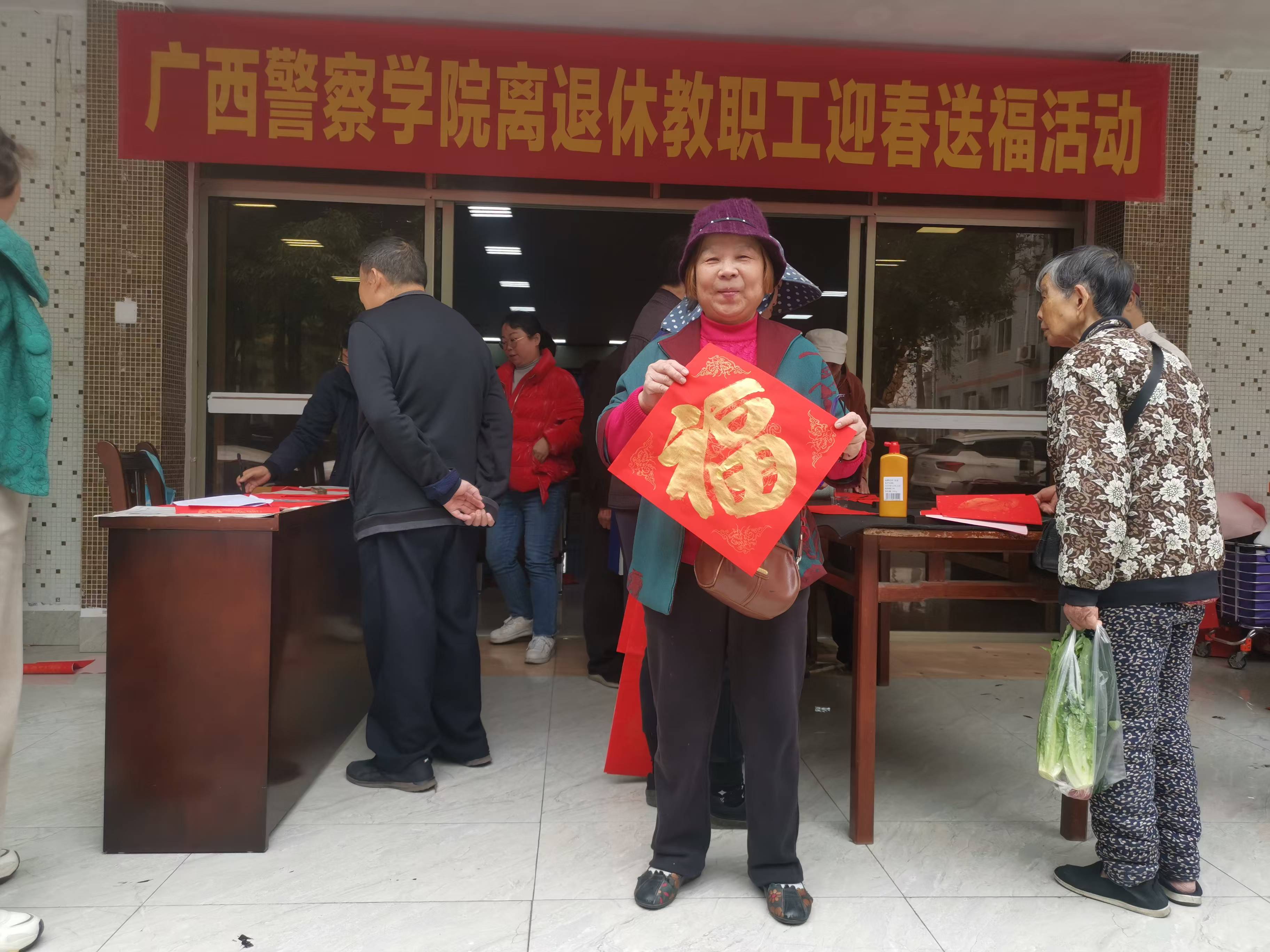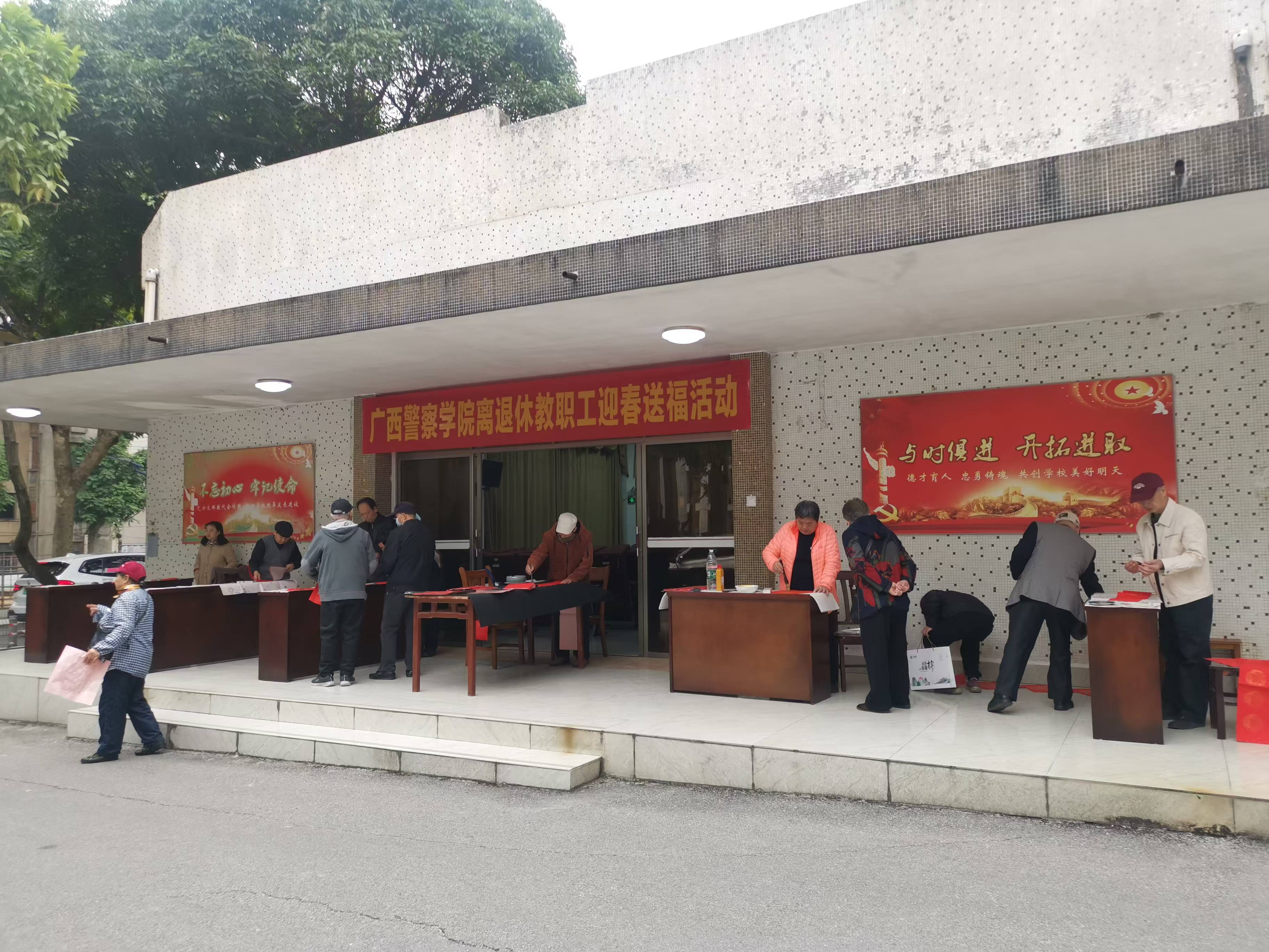 2025年春节将至,为深入践行党的二十届三中全会精神,传承与弘扬中华优秀传统文化,营造欢乐喜庆、文明祥和的节日氛围,1月8日上午,离退休工作处组织退休教职工在长湖校区小礼堂前开展迎春送福活动。
