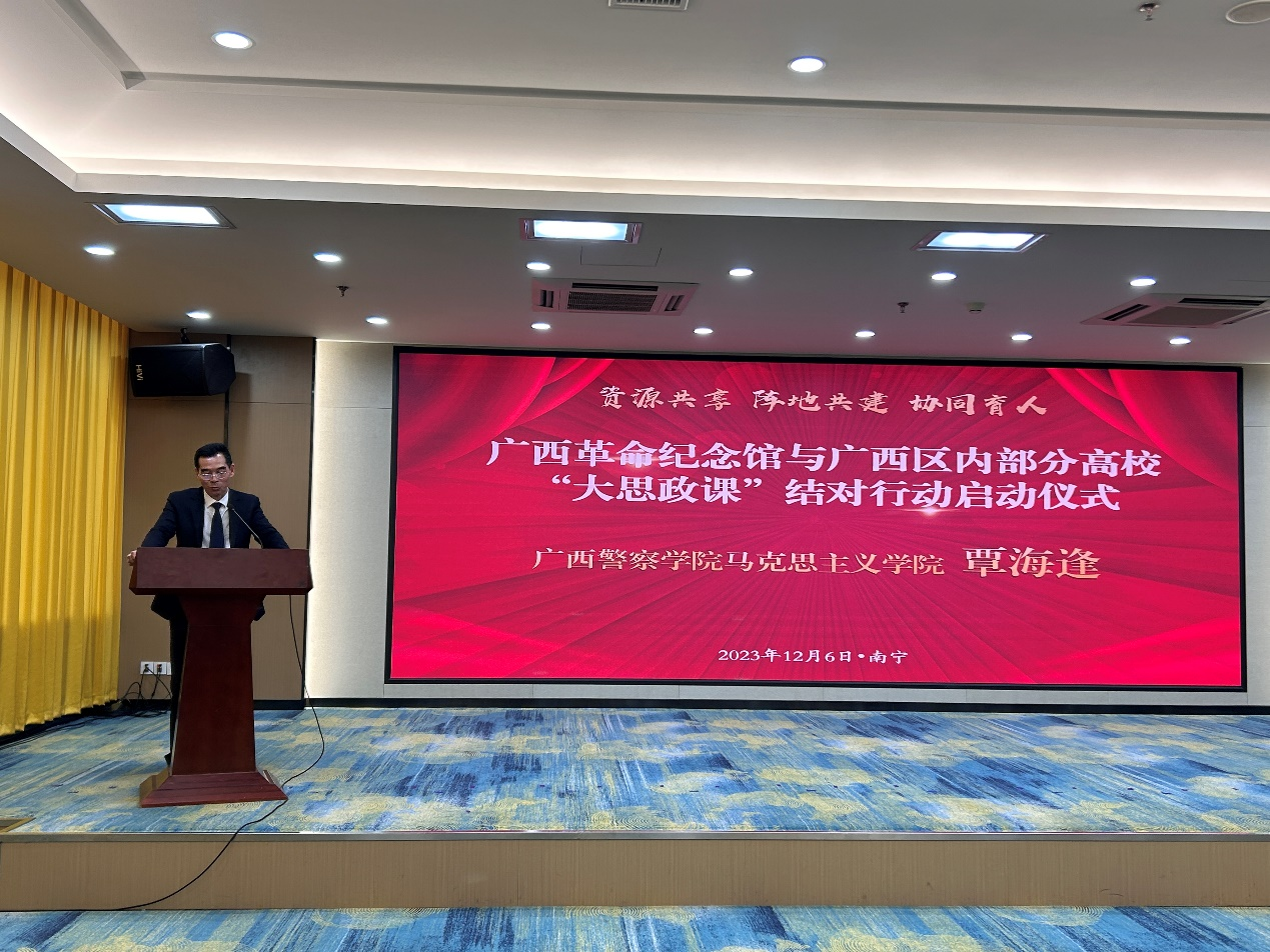 启动仪式上,自治区退役军人事务厅党组成员、副厅长徐文伟致辞,各结对共建单位现场签订共建协议并交流发言。我院直属党支部书记覃海逢在交流发言中介绍了学院在广西革命纪念馆开展实践教学取得的成效,同时在教师研修、学生研学中将广西革命纪念馆变成鲜活的历史教材,通过以红色文化精神教育人、影响人、感召人,扩大了广西革命文化的社会影响和教育价值。