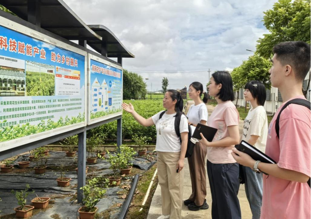 调研团队先后走访了横州市茉莉花产业园、数字化生产基地、茉莉极萃园以及茉莉花交易市场。通过实地走访,学生们深入了解了茉莉花产业发展现状,以及科技赋能乡村振兴的实践成果,对国情、民情、区情有了更深刻的认识,并明确了今后的奋斗方向,增强了奋进信心。