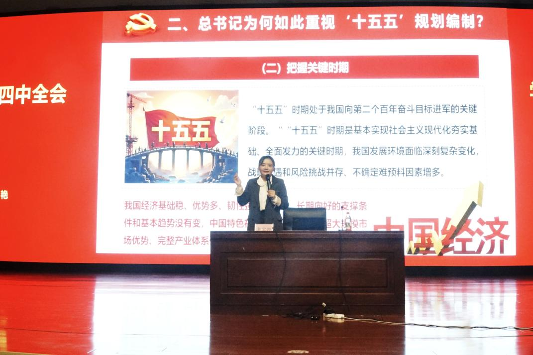 本次宣讲活动由学院各教研室骨干教师组成的宣讲团负责实施。宣讲紧扣习近平总书记在党的二十届四中全会上所作的工作报告和《中共中央关于制定国民经济和社会发展第十五个五年规划的建议》的主要内容展开。宣讲团成员系统阐述了全会的重大时代意义,深入讲解了“十四五”时期我国发展取得的重大成就,客观分析了新征程上面临的新形势与新任务,详细阐明了“十五五”时期经济社会发展的主要目标,运用大量的案例进行了说明。宣讲主题鲜明,脉络清晰,内涵丰富。