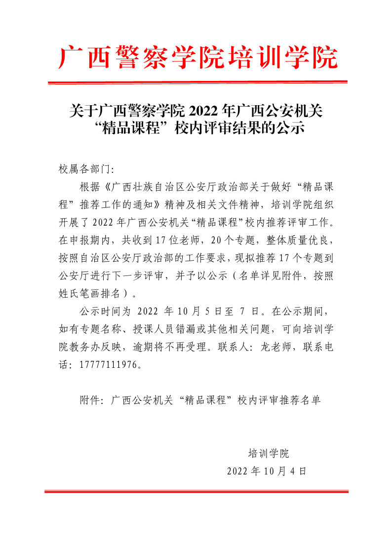 关于TapTap点点2022年广西公安机关 “精品课程”校内评审结果的公示