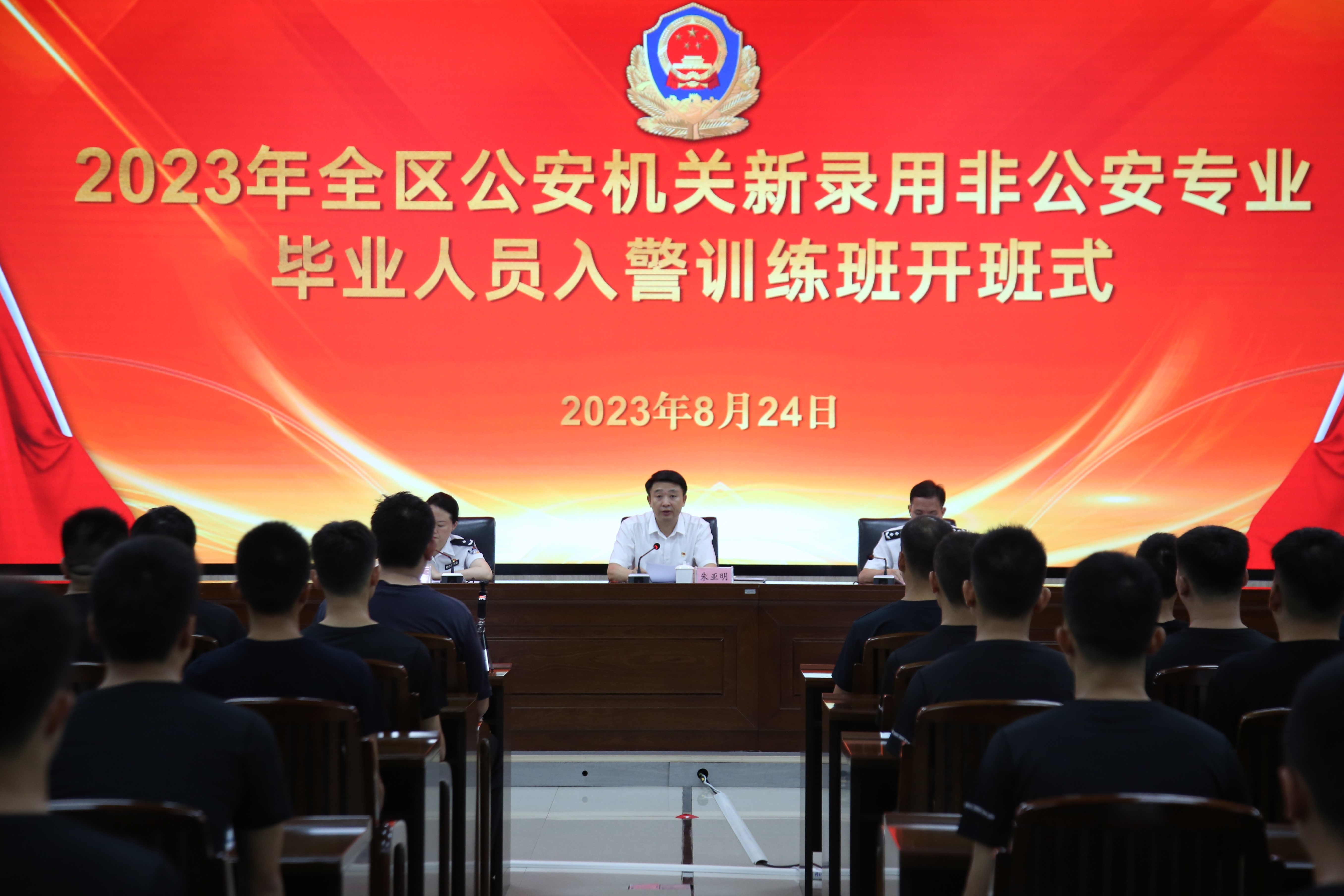朱亚明出席2023年全区公安机关新录用非公安专业毕业人员入警训练班开班式 来源: 发布时间:2023-08-25 10:00:39 浏览次数: 次 【字体:小 大】 8月24日,自治区公安厅党委委员、政治部主任朱亚明出席2023年全区公安机关新录用非公安专业毕业人员入警训练班开班式并作动员讲话。编辑:黄雁集审核:林 凯签发:邱腾意 分享到: 【打印正文】