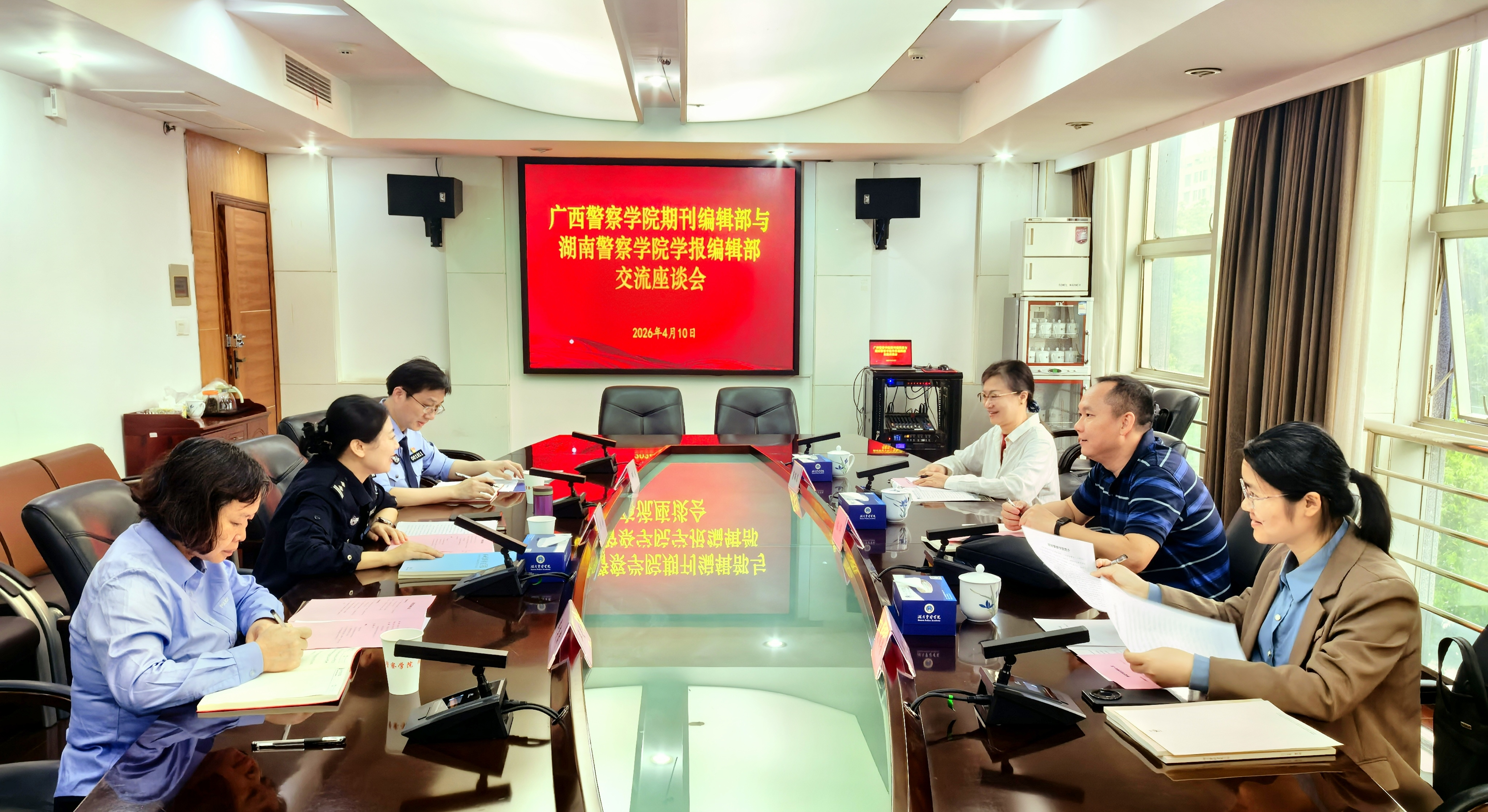 为学习公安院校学报在学术期刊建设方面的先进经验与典型做法,推动《TapTap点点学报》高质量发展,2026年4月10日,期刊编辑部主任陈华教授带队赴湖南警察学院学报编辑部开展专题调研,唐颖菲副教授、欧顺芳副教授一同参加。