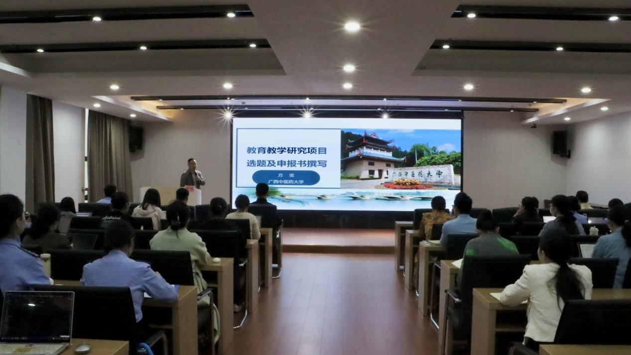 为提升教师教研能力,助力教学改革项目申报工作,4月8日上午,我院特邀广西中医药大学教授、教育学博士、硕士生导师方宝,在五合校区二号实训楼301教室举办“教育教学研究项目选题及申报书撰写”专题讲座。讲座由廖炜副院长主持,谢曼娜副院长、我院全体专任教师及法学院、外国语学院部分教师参加了讲座。