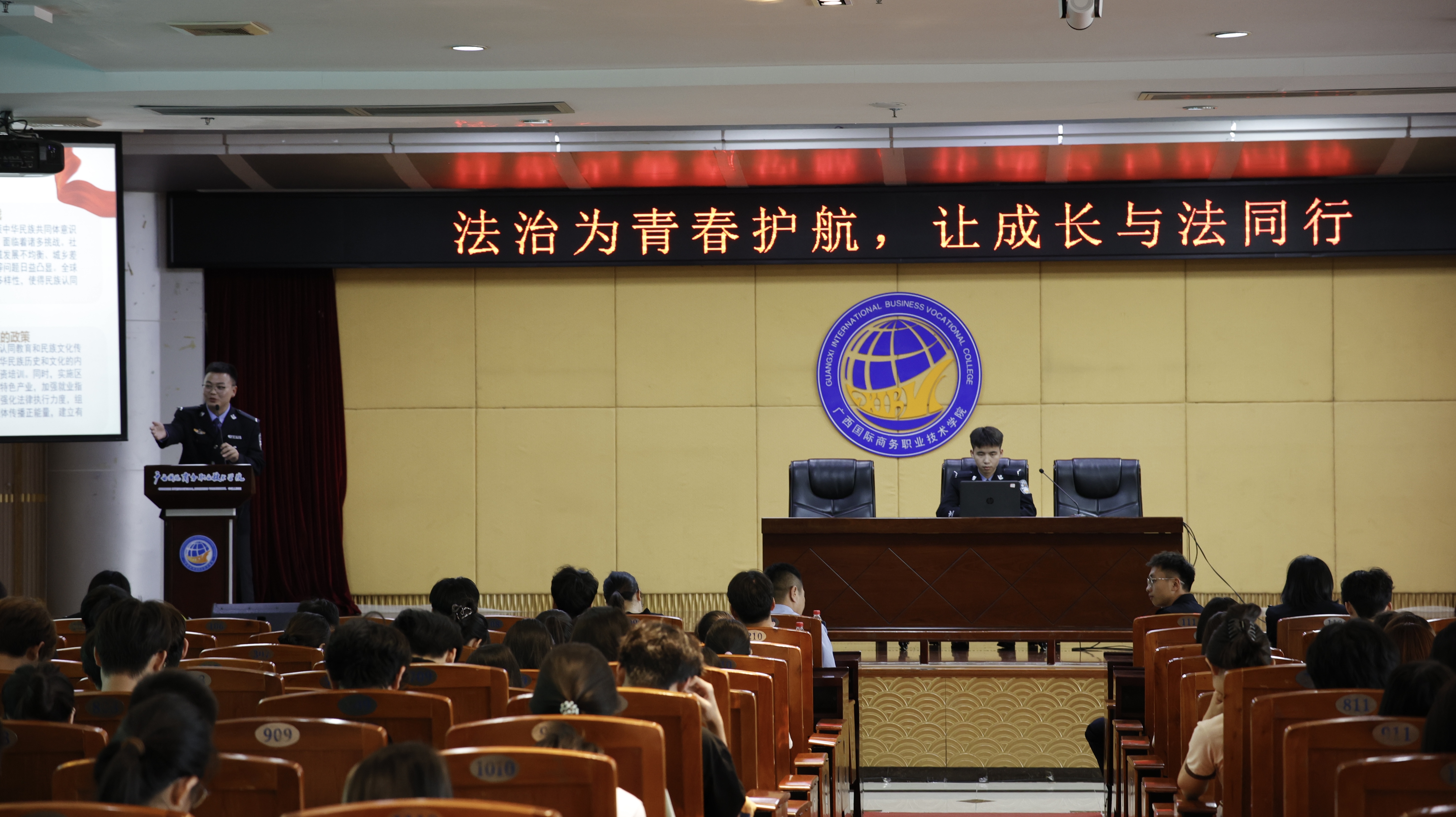 为深入贯彻落实法治教育进校园的号召,增强大学生的法律意识和自我保护能力,4月14日下午,司法应用学院团委组织带领社区矫正实践研讨社和司法明义宣讲团前往广西国际商务职业技术学院人工智能学院,开展“法治为青春护航,让成长与法同行”主题普法活动。通过专题宣讲、互动问答等形式,活动为现场250余名学生呈现了一堂既生动又富有实效的法治教育课。