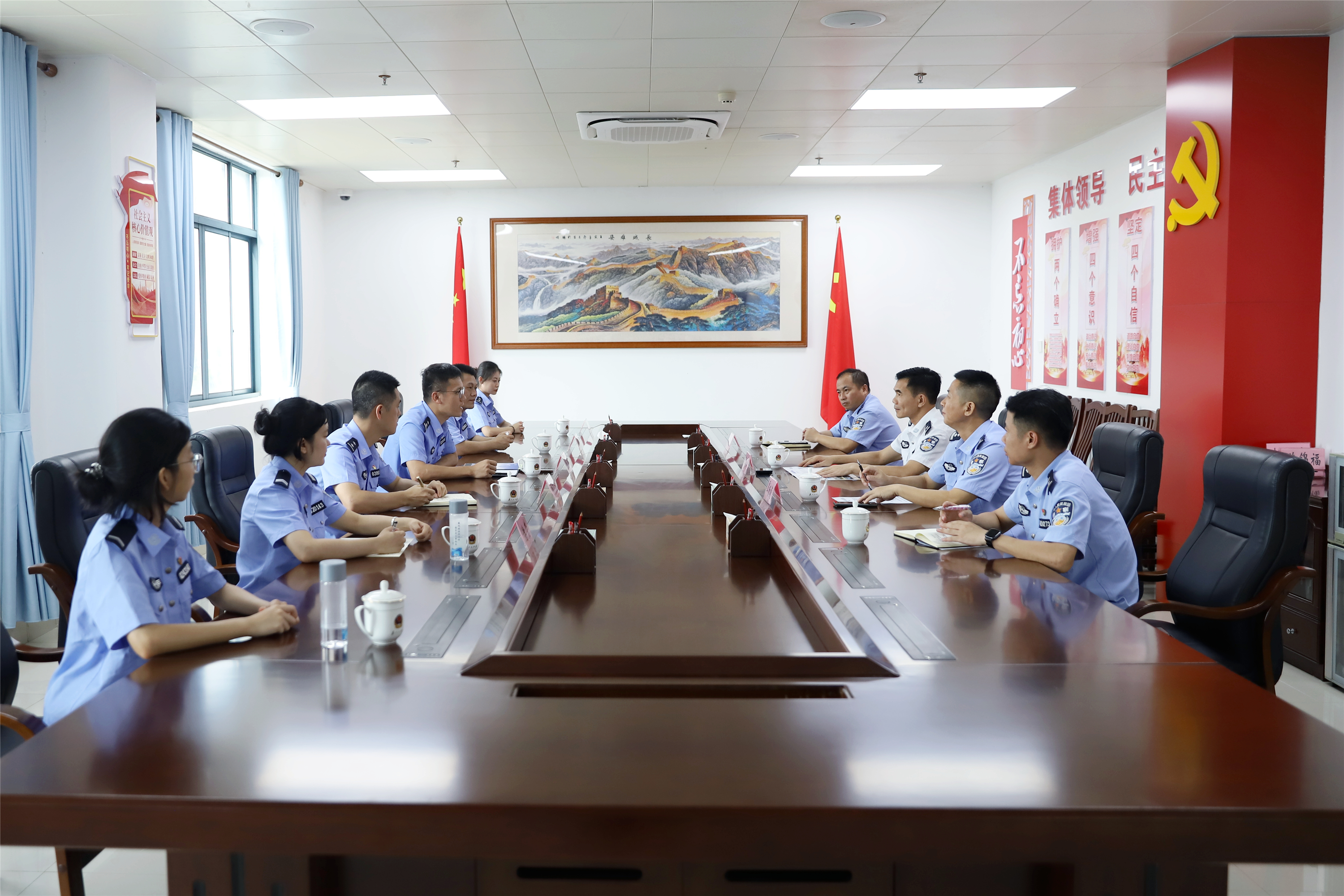 随后,廖炜副院长与李春萌监狱长、覃杨峻主任等领导进行座谈,双方围绕“校监协同育人”“实践教学基地建设”深入交流,就课程共建、实习实训达成共识,为深化产教融合、共育司法人才拓宽路径。