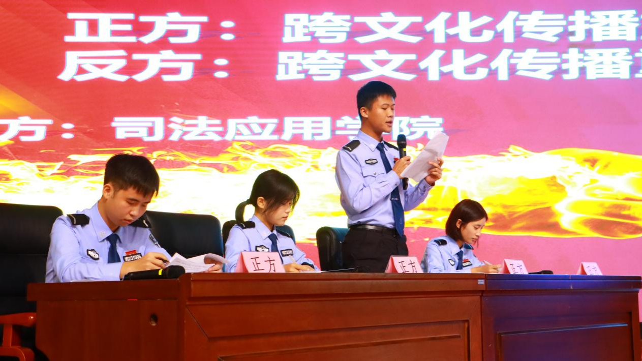本次决赛围绕“跨文化传播重点在‘尊重文化差异’”展开交锋。司法应用学院辩论队立足辩题,从多角度阐释观点,结合丰富的文化传播案例,分析尊重文化差异在跨文化传播中的现实意义,展现了扎实的知识储备与敏捷的应变能力。