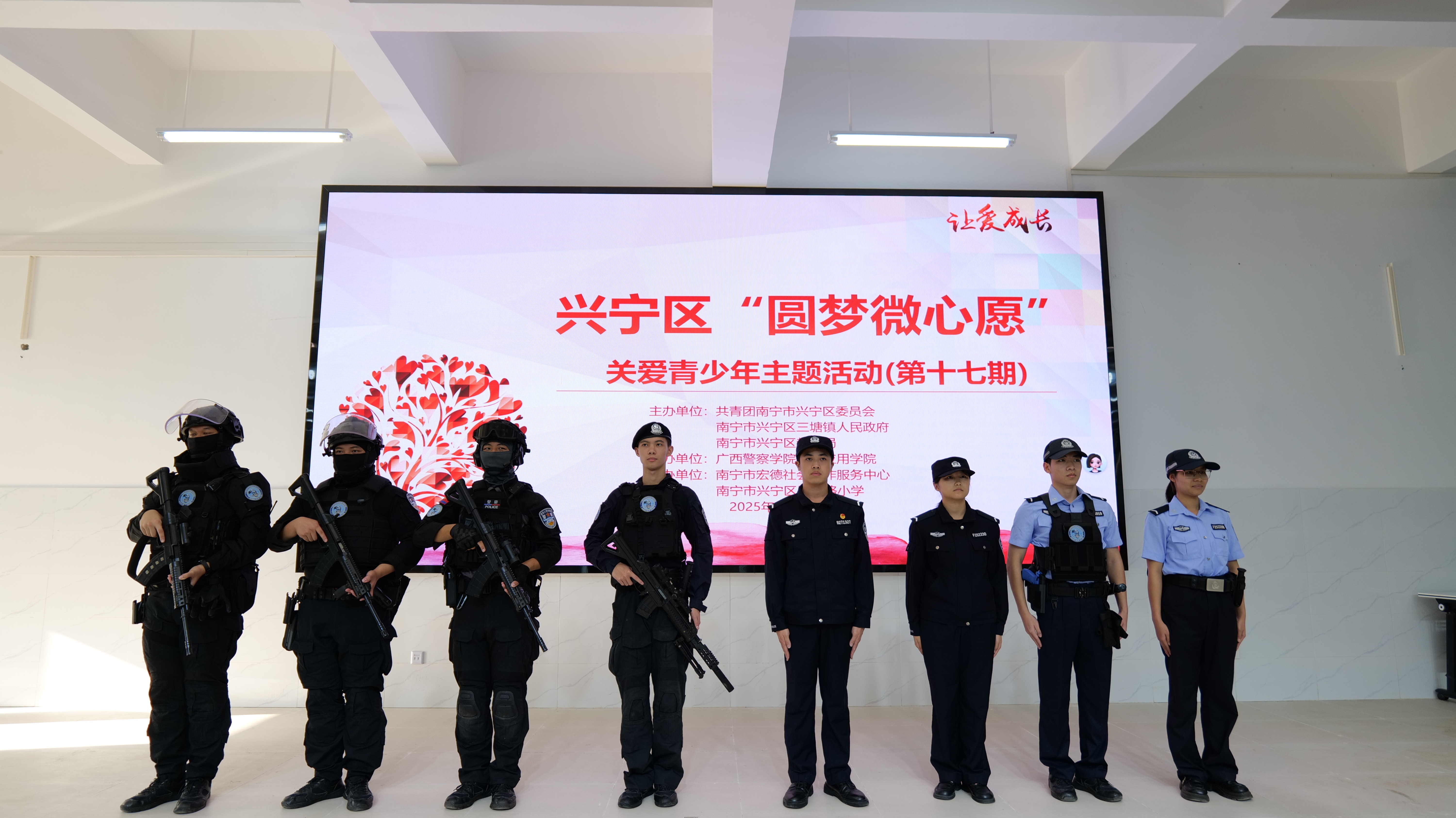 为延续校园公益温度,以实际行动关爱儿童成长,增强青少年法治意识,2025年12月2日下午,司法应用学院师生代表前往南宁市兴宁区恩湖路小学开展公益实践活动。活动由共青团南宁市兴宁区委员会、南宁市兴宁区三塘镇政府、南宁市兴宁区教育局主办,司法应用学院承办,南宁市宏德社会工作服务中心协办。