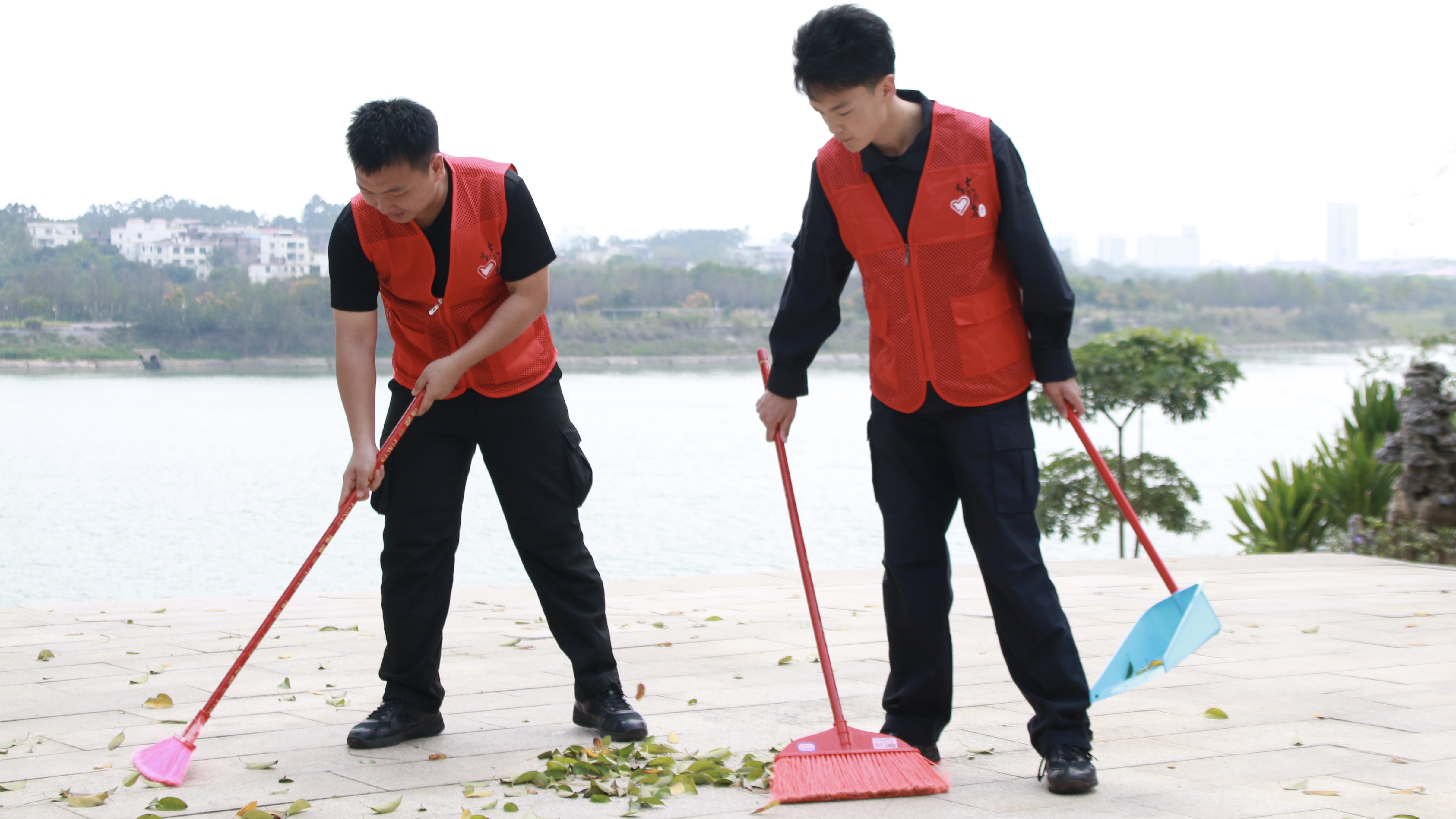 抵达邕江沿岸后随即迅速分组投入清洁工作。大家手持扫帚与垃圾袋,分工协作、互帮互助,重点对岸边死角进行排查,仔细捡拾烟头、塑料瓶等垃圾,并严格做好垃圾分类收集,以实际行动守护生态环境。