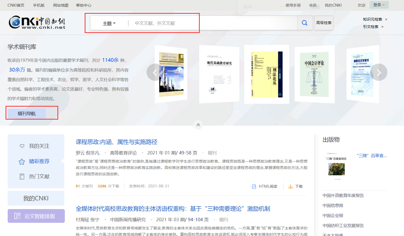 图3 学术辑刊导航