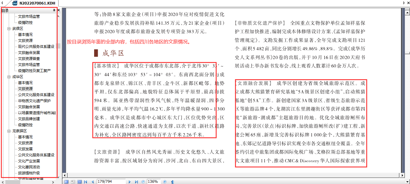 知网产品《中国年鉴网络出版总库》以电子化展示年鉴资源原貌,将年鉴中的信息以条目为基本单位,是从中央到地方,各地域、各行业、各系统,反映国情资讯、行业发展、地域动态的事实资料库。该数据库可以在宏观、微观层面,用事实勾勒社会的长期发展变化脉络,反映事物变化的因果关系,是研究当代社会发展规律的基本依据。