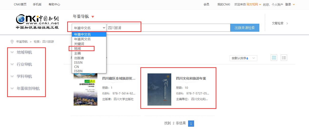 图9 年鉴一框式检索--可结合多个检索条件