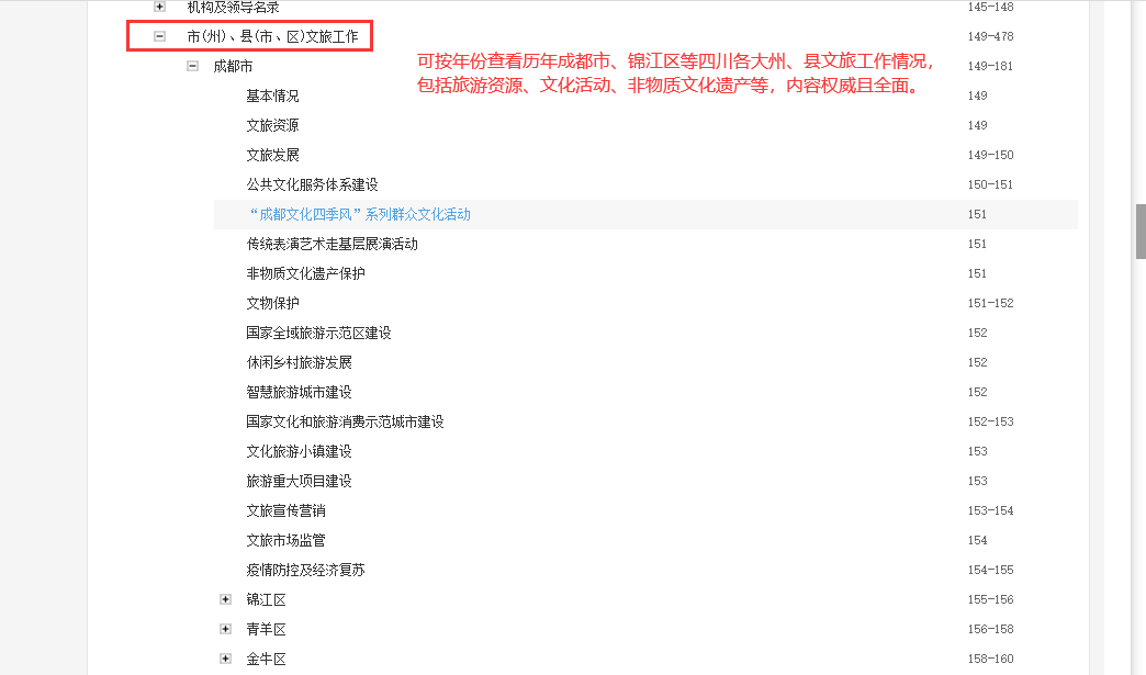 展示该条文献所在年鉴的上下文逻辑,点击对应标题,可纵向对比查看对应的文献内容。点开其中一个条目的知网节,可以进行阅读与下载。在相关文献推荐中深入分析本主题脉络。