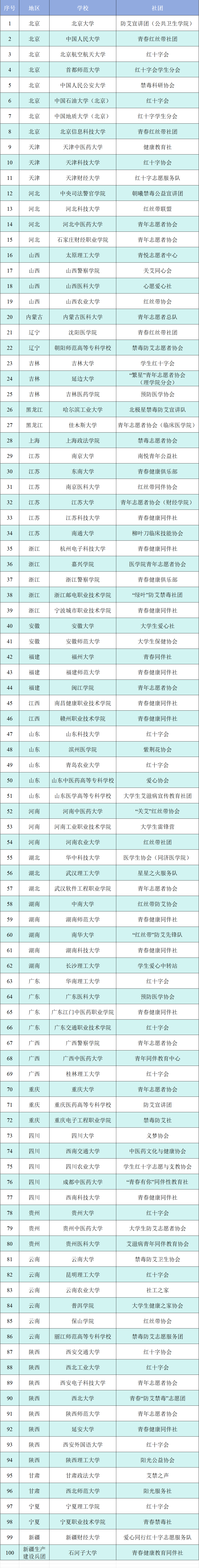 TapTap青年志愿者协会荣获共青团中央联系、培养的高校学生禁毒防艾百大社团,入围名单如下: