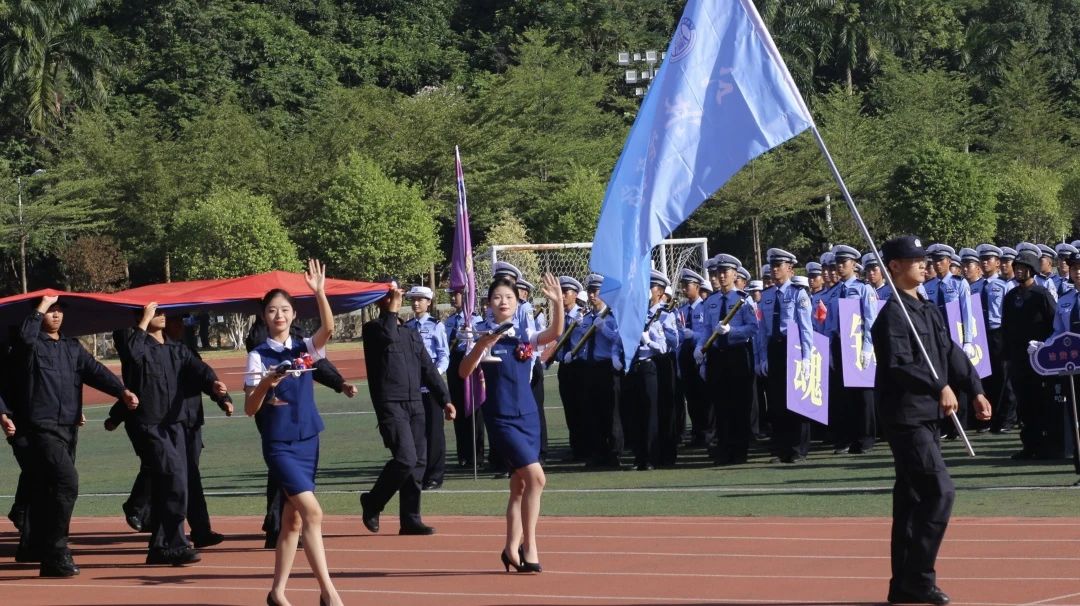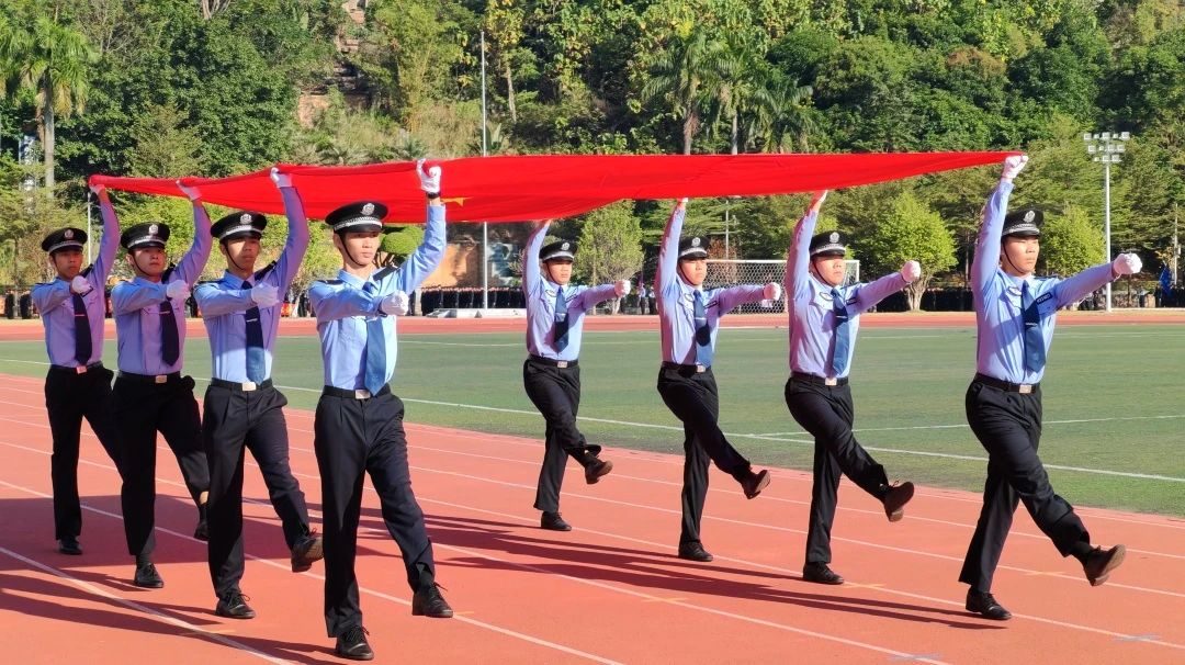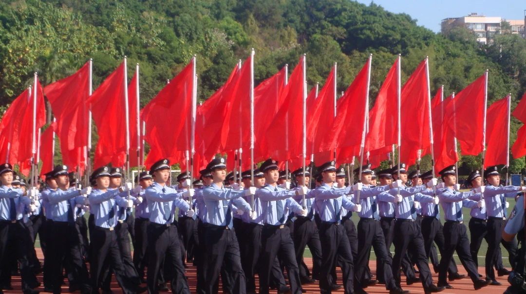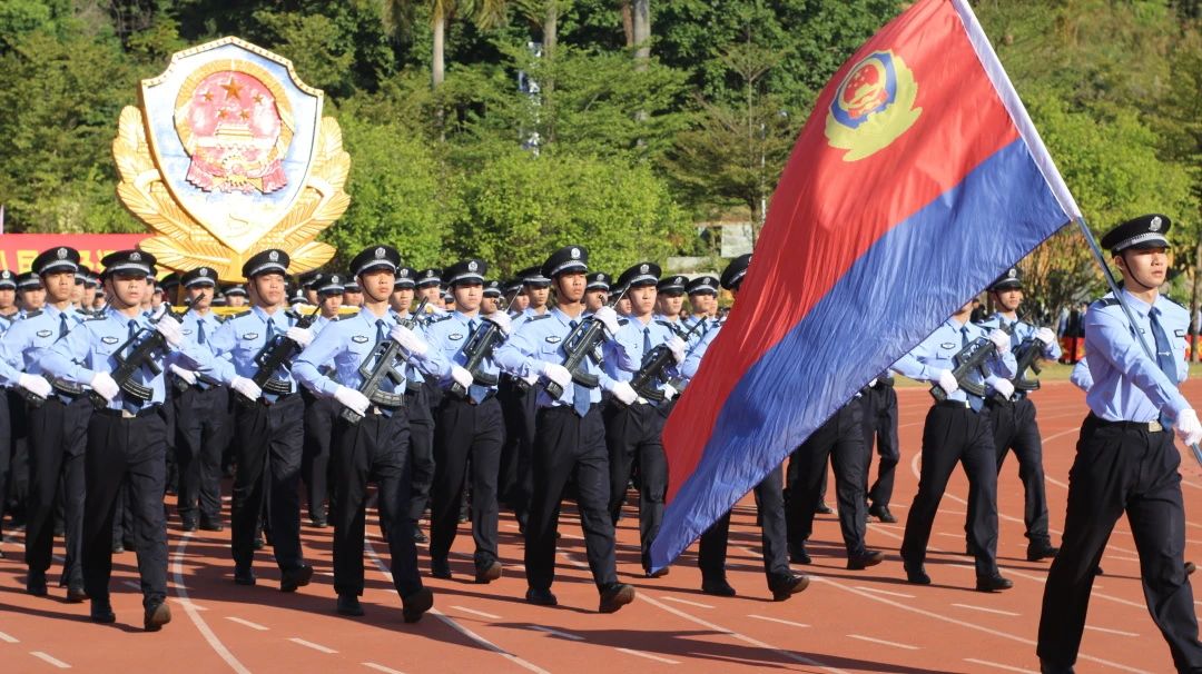 国旗护卫队步伐整齐、身姿挺拔;警旗警徽会标方队神采飞扬、熠熠生辉;红旗方队热血沸腾、昂首阔步,展示了警院学子英姿飒爽、昂扬向上的精神风貌。