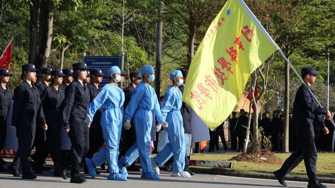 运动员们精神饱满、步伐整齐,活力无限,以精彩的特色表演彰显学院风采。