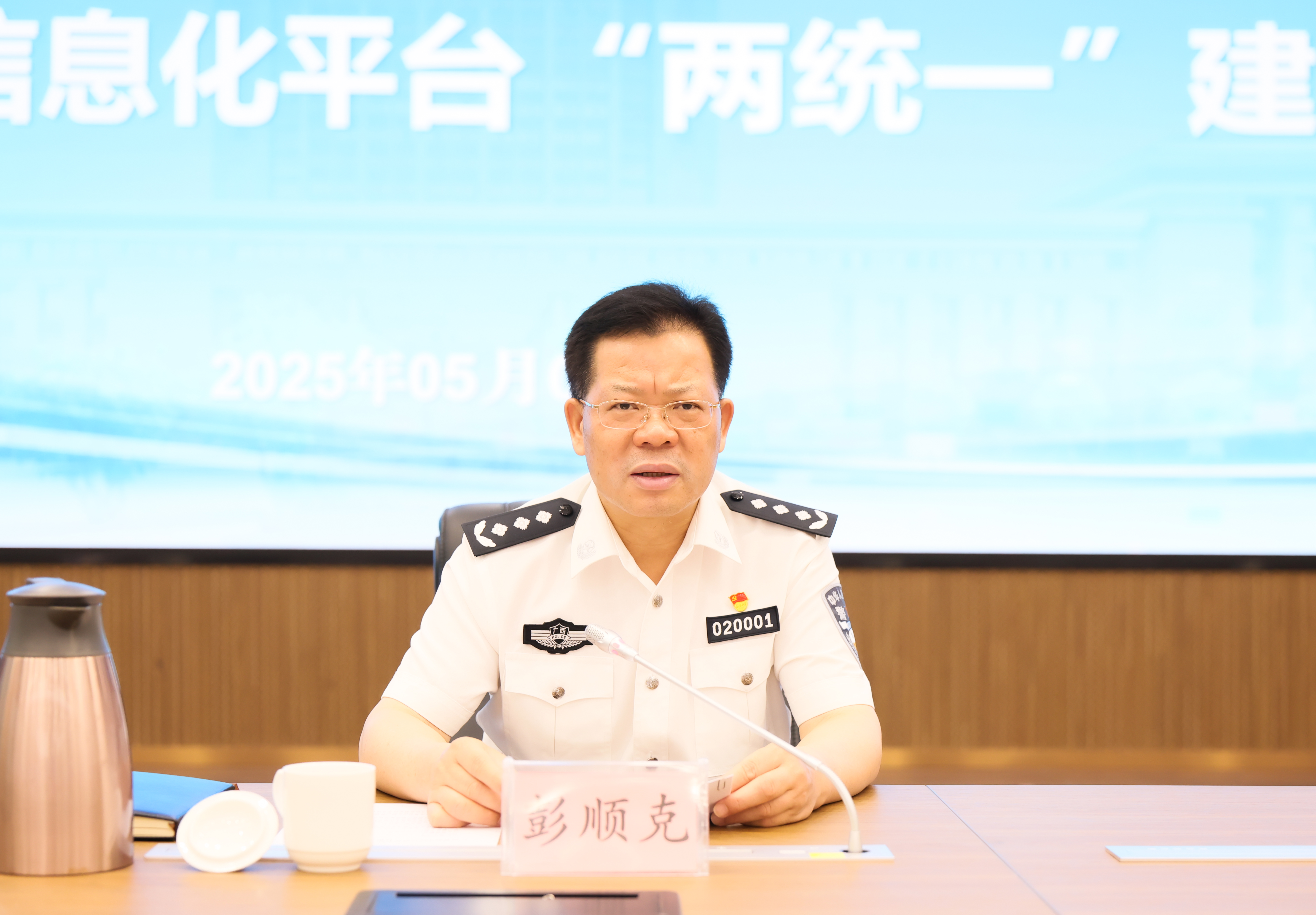 为贯彻落实自治区公安厅召开的广西公安高等教育高质量发展工作推进会精神,推动学校统一身份认证与统一门户融合平台上线运行,5月8日,学校召开信息化平台“两统一”建设推进会。学校党委书记彭顺克主持会议并讲话,校党委委员、副校长陈恃中,自治区公安厅数侦总队副总队长唐运烜出席会议。