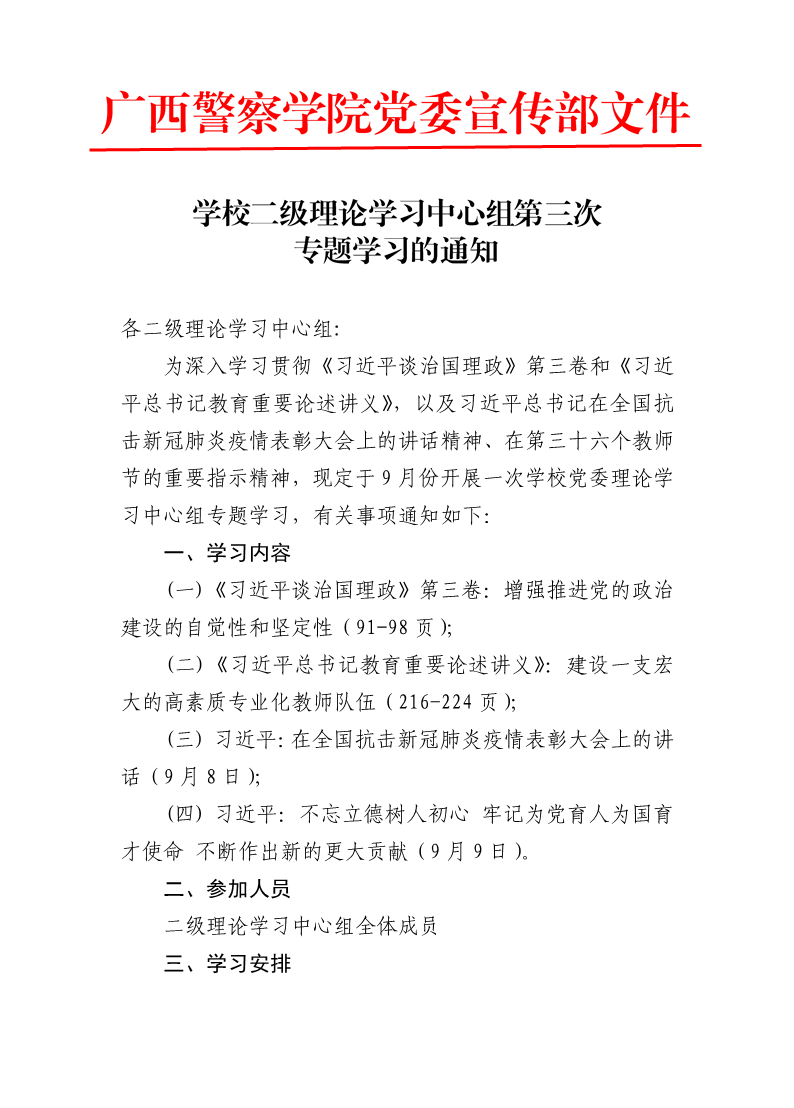 学校二级理论学习中心组第三次专题学习的通知