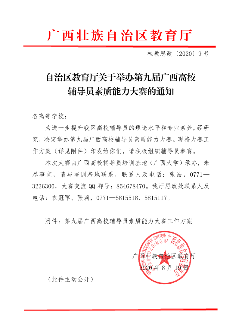 关于举办第九届广西高校辅导员素质能力大赛的通知