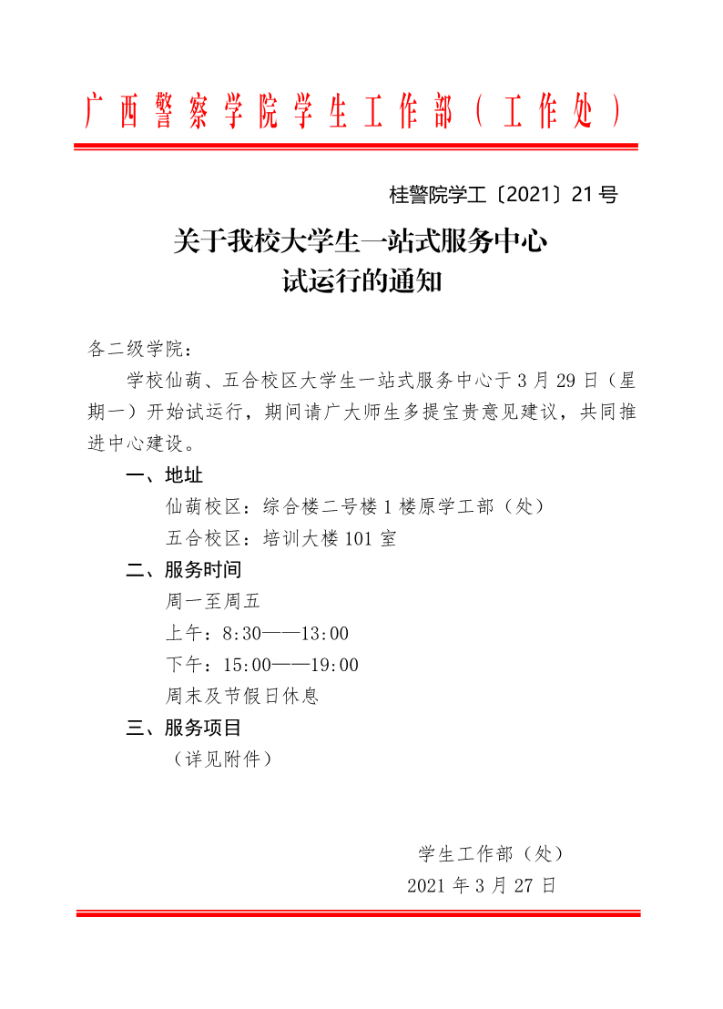 关于TapTap大学生一站式服务中心试运行的通知 来源: 发布时间:2021-03-27 15:35:28 浏览次数: 次 【字体:小 大】 附件:大学生一站式服务中心服务项目.pdf 分享到: 【打印正文】