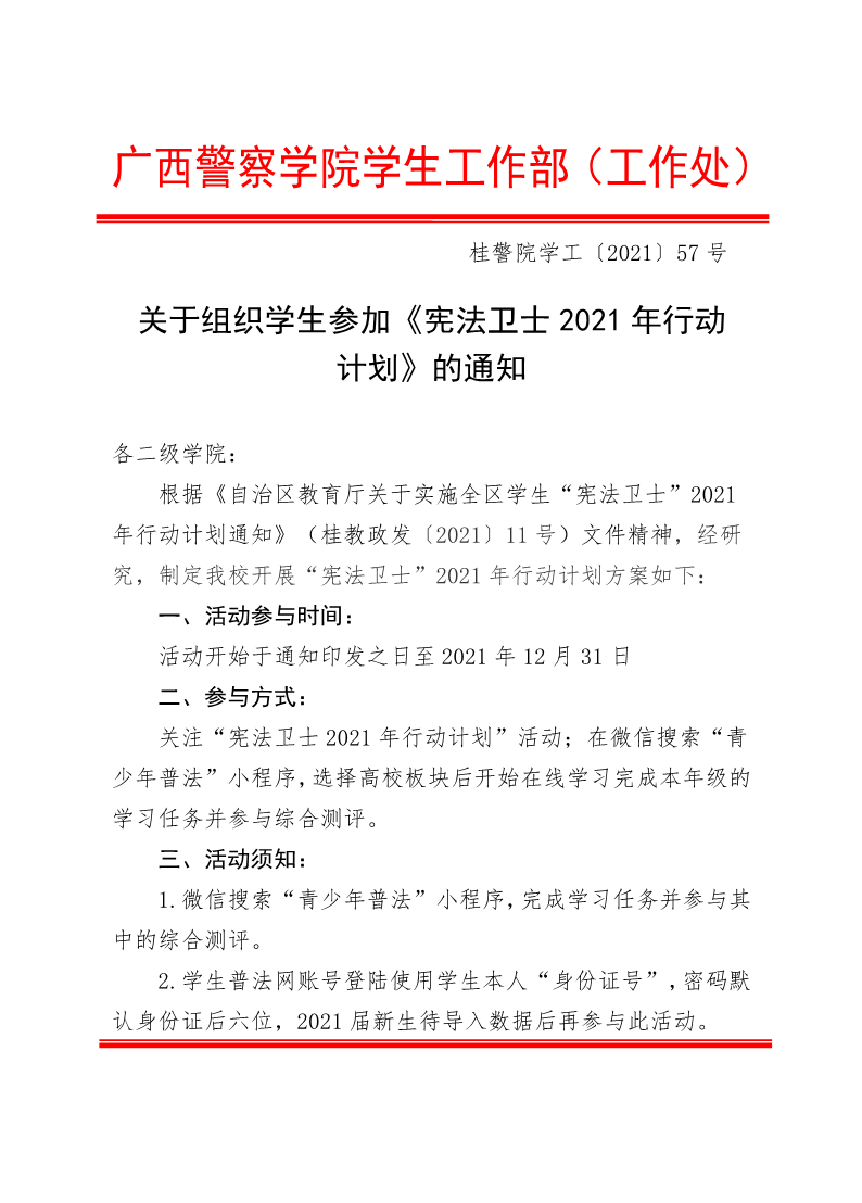 关于组织学生参加《宪法卫士2021年行动计划》的通知